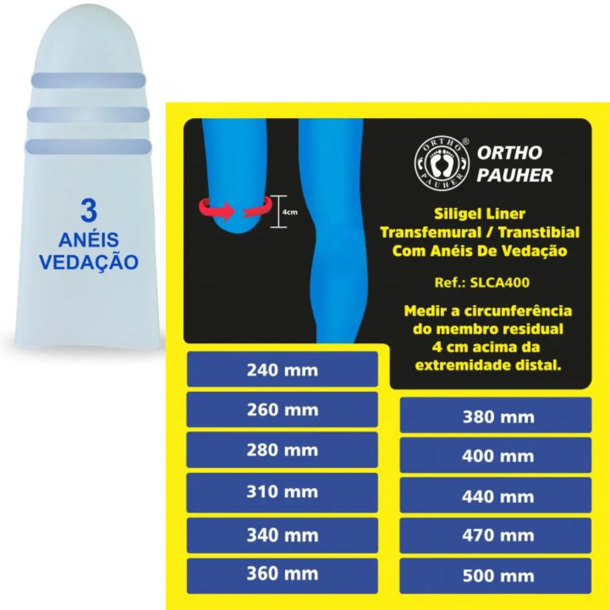 Siligel Liner Transfemural Transtibial com Anéis de Vedação 260Mm