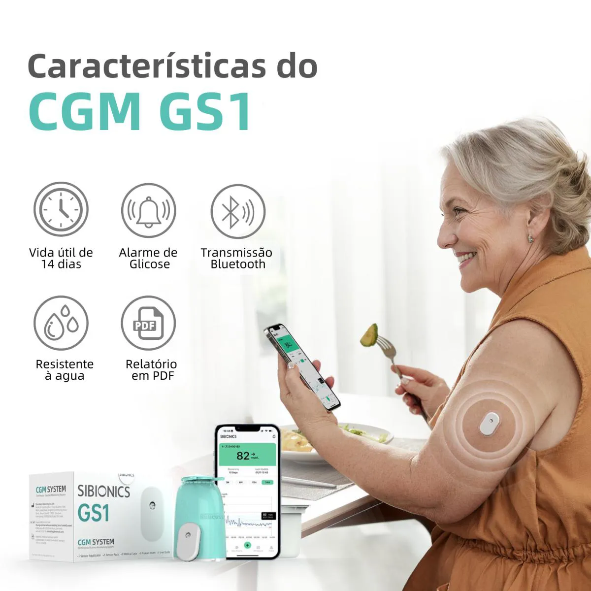 Monitore sua glicose com precisão, conforto e em tempo real. O Sibionics GS1 é um sistema avançado de monitoramento contínuo de glicose (CGM), projetado para oferecer liberdade, segurança e controle para pessoas com diabetes. Ideal para uso pessoal, clínico e esportivo, ele proporciona dados em tempo real diretamente no seu celular.Principais Benefícios: