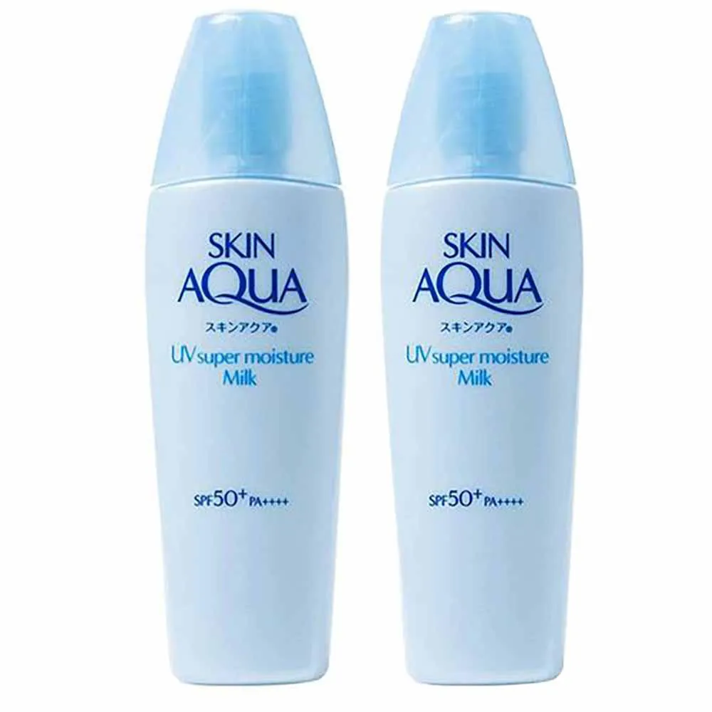 Protetor Solar Skin Aqua Super Moisture Milk FPS50O que é e para que serve?Protetor Solar Skin Aqua Super Moisture Milk FPS 50 com proteção UVA e UVB para o rosto e corpo de base aquosa, com textura leve e fácil de espalhar. Loção leitosa rica em hidratantes, torna-se transparente logo após aplicação.