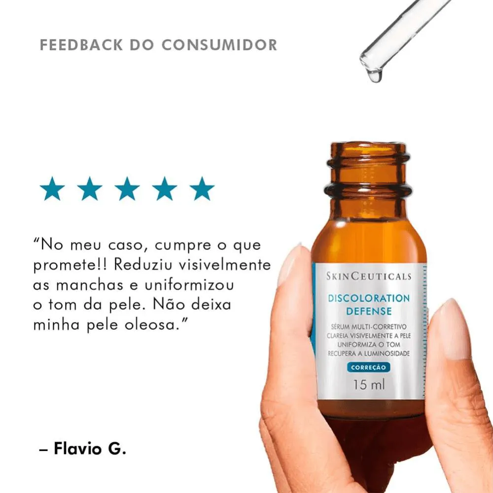 Skinceuticals Discoloration Defense Sérum Multicorretivo 15mlSkinceuticals Discoloration Defense Sérum Multicorretivo 15ml É formulado para combater e corrigir problemas relacionados à descoloração da pele, incluindo manchas escuras, hiperpigmentação e irregularidades no tom de pele. Sua ação visa proporcionar uma pele mais uniforme e luminosa, atuando como um aliado no tratamento de discromias e imperfeições cutâneas.