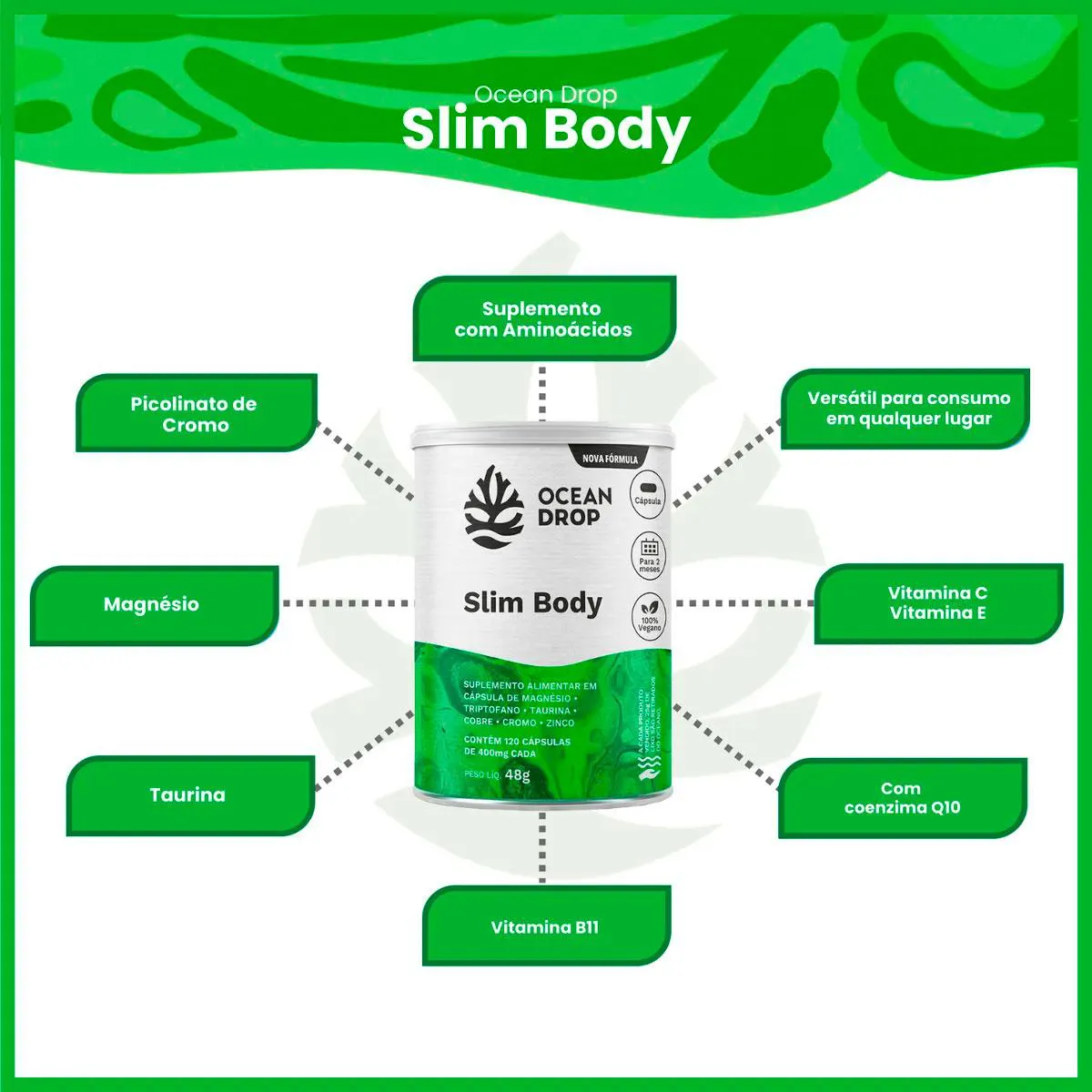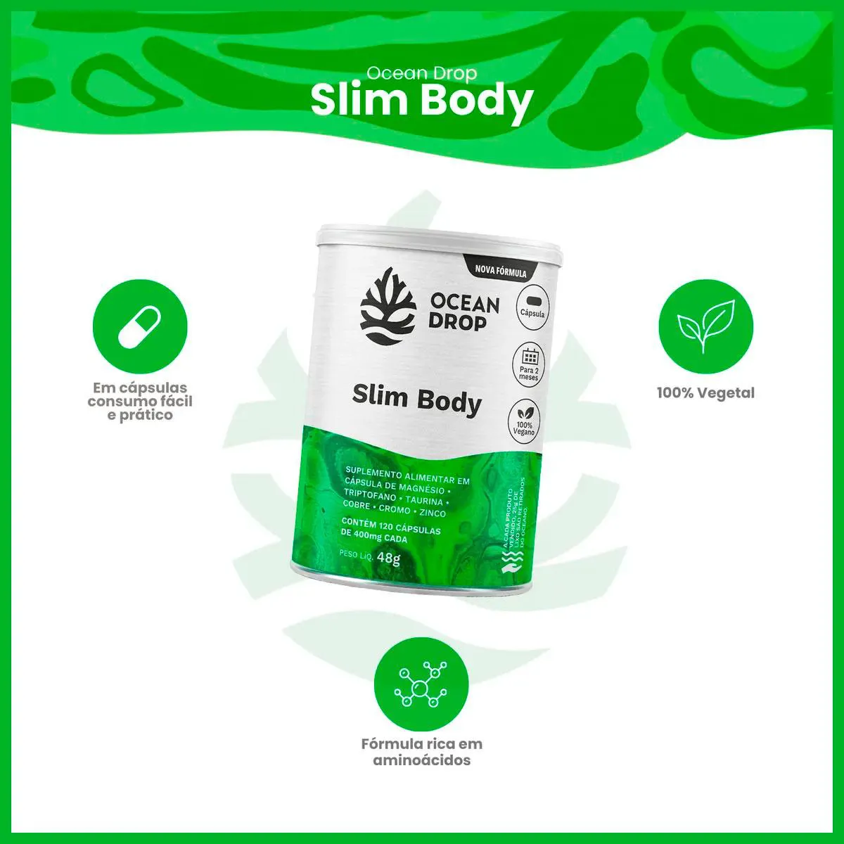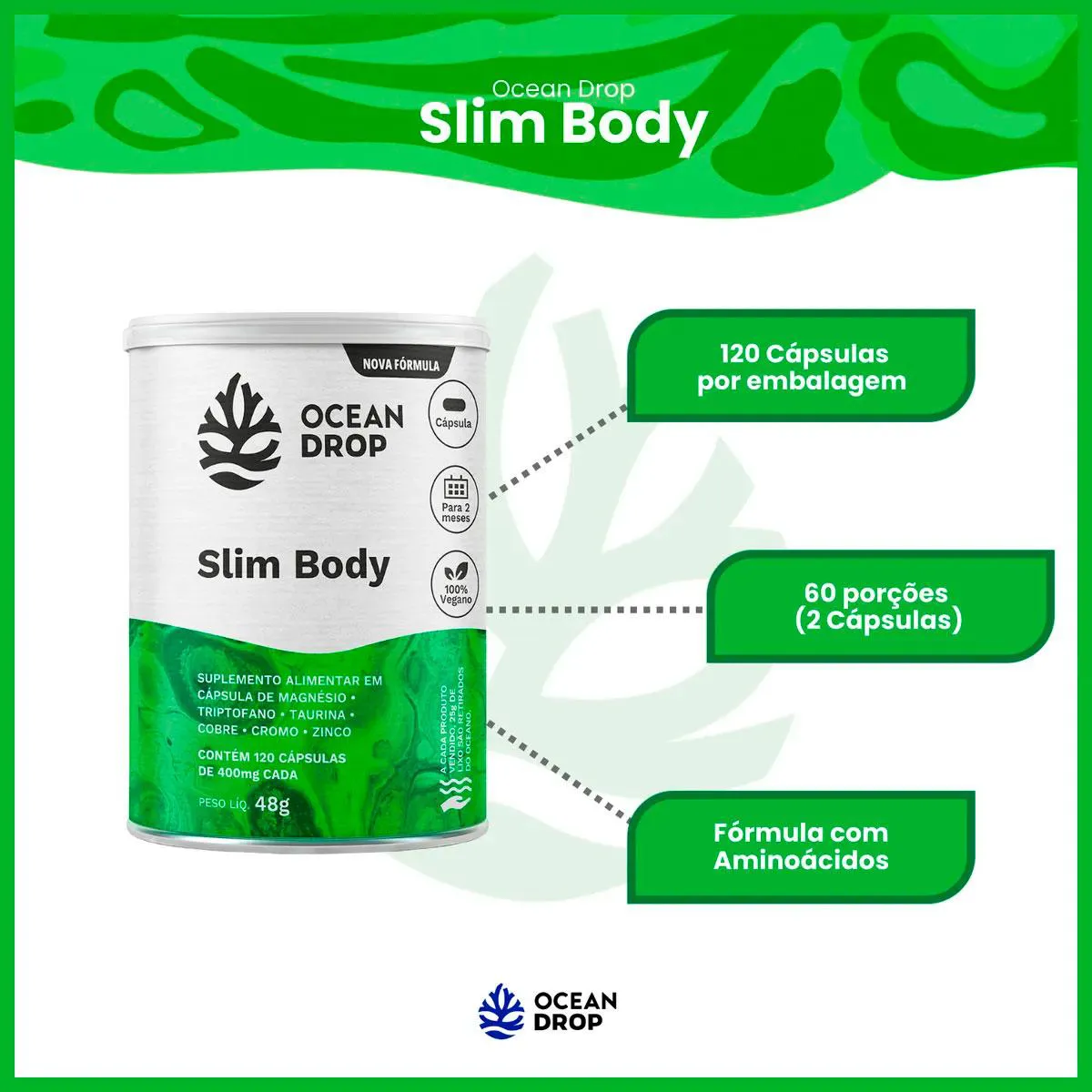 Slim Body Cromo + Triptofano + Taurina Vegano (120 Capsulas) Ocean Drop