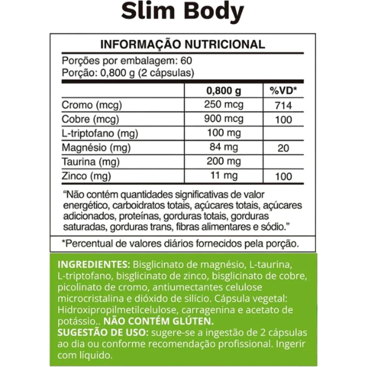 O Slim Body Ocean Drop Vegano 120 Cápsulas é um suplemento natural formulado com ingredientes como bisglicinato de magnésio, L-taurina, L-triptofano, bisglicinato de zinco, bisglicinato de cobre e picolinato de cromo, desenvolvido para auxiliar na promoção de um estilo de vida equilibrado. Trata-se de um produto vegano, livre de glúten e lactose, adequado para pessoas com restrições alimentares.