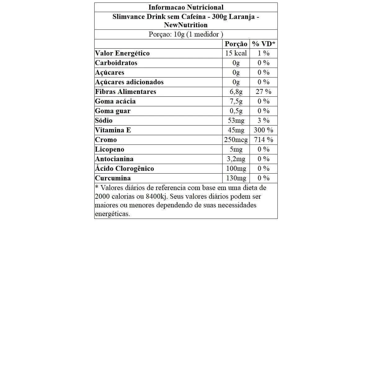 Slimvance Drink sem Cafeína - 300G Laranja - Newnutrition