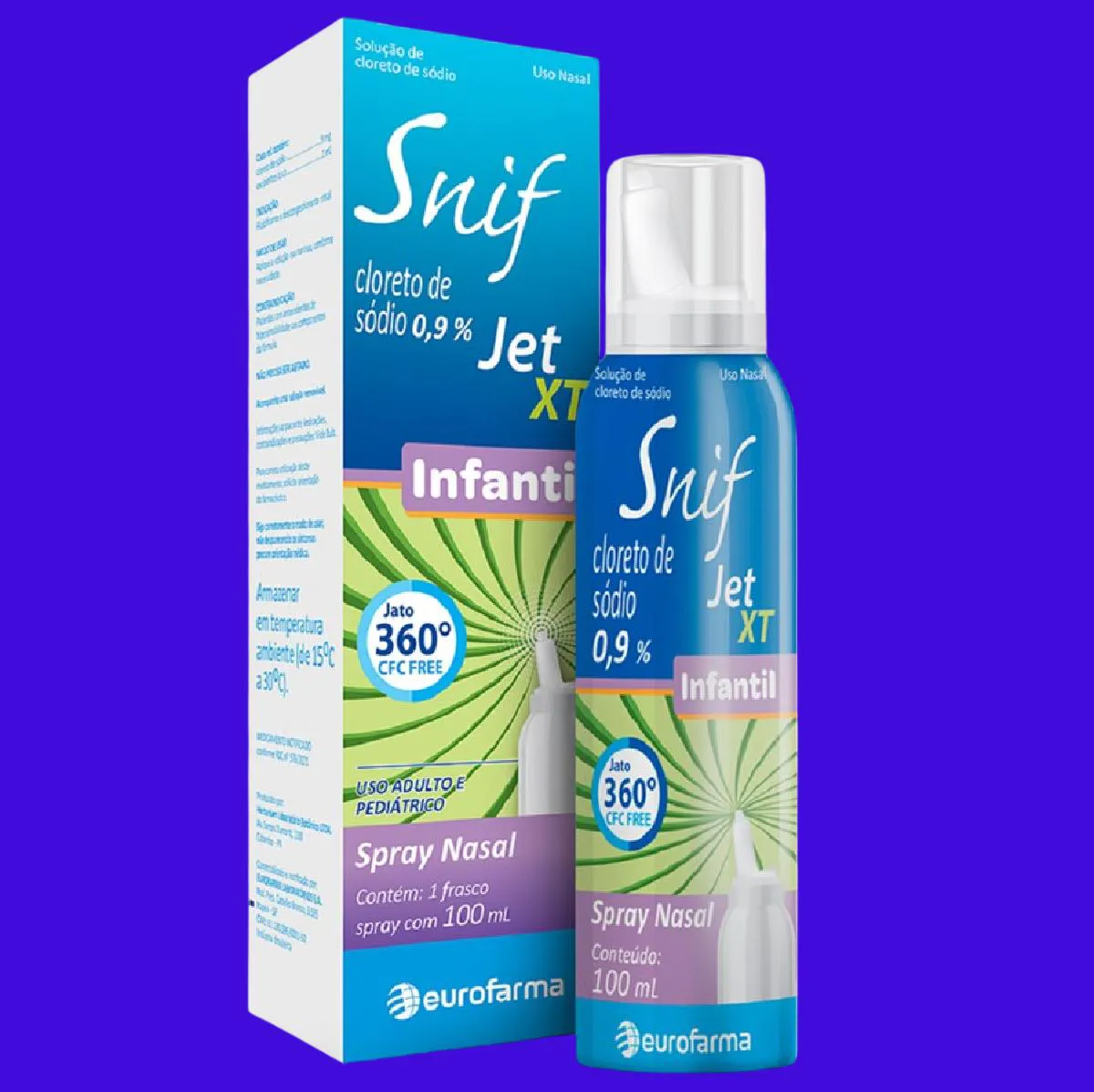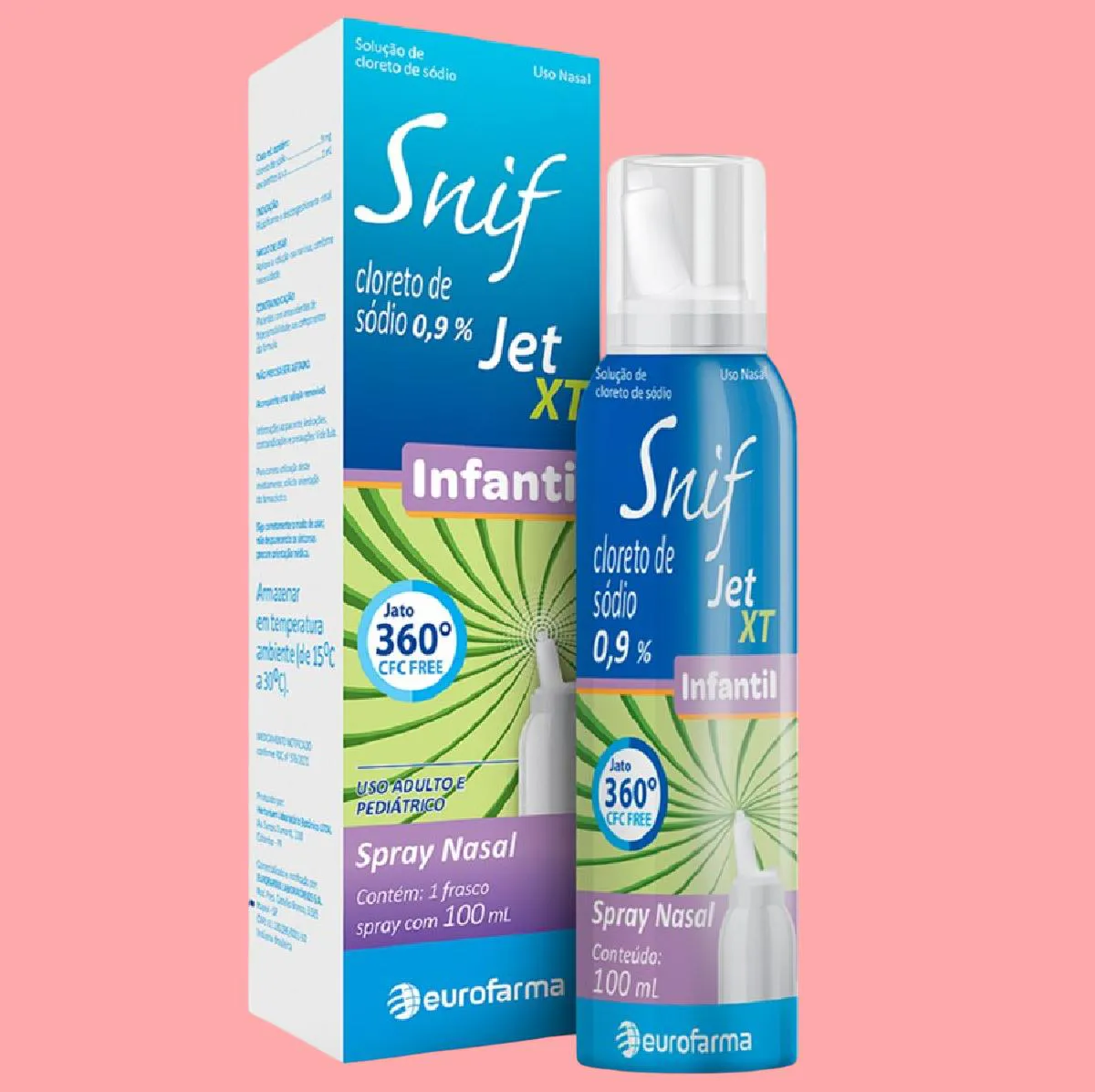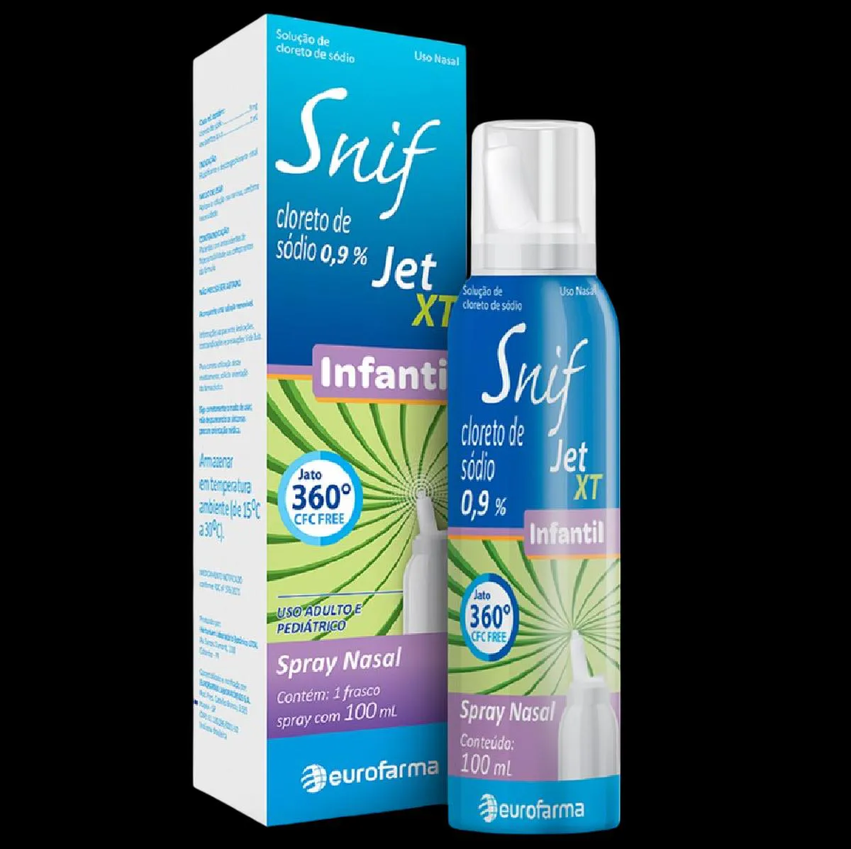 Snif Jet XT Infantil 100 mL é uma solução nasal em spray de cloreto de sódio 0,9% sem conservantes. Com um jato 360° contínuo, podendo ser usado em qualquer posição.