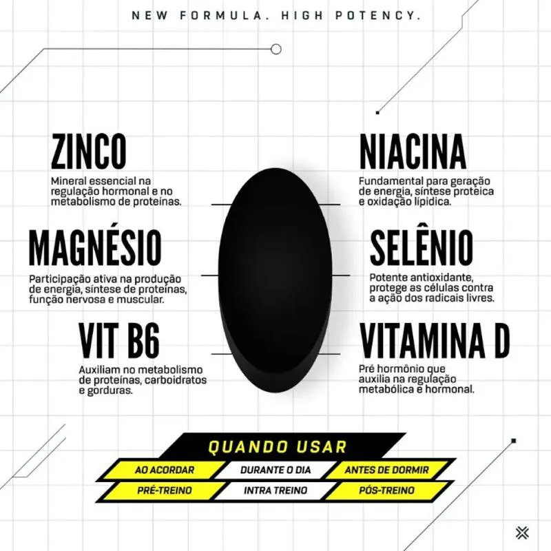 O SomaPro ZMA+ Iridium Labs é um suplemento nutricional composto por Zinco, Magnésio e vitamina B6, desenvolvido especificamente para atletas e praticantes de atividades físicas. Sua fórmula combina nutrientes essenciais que auxiliam no funcionamento muscular, recuperação e suporte à vitalidade física.