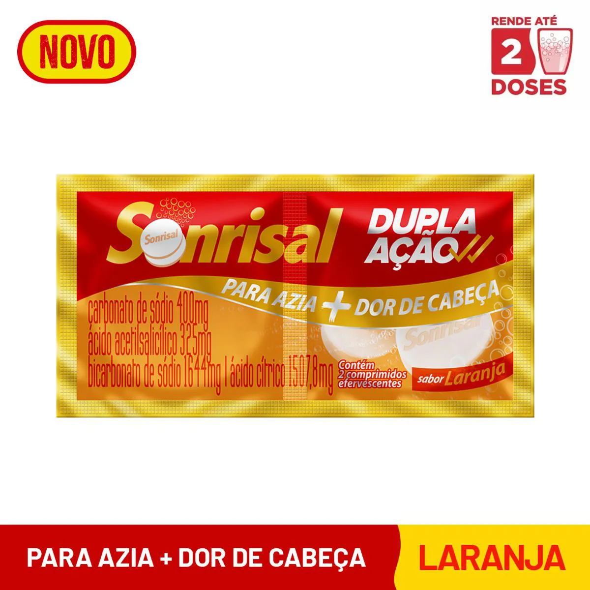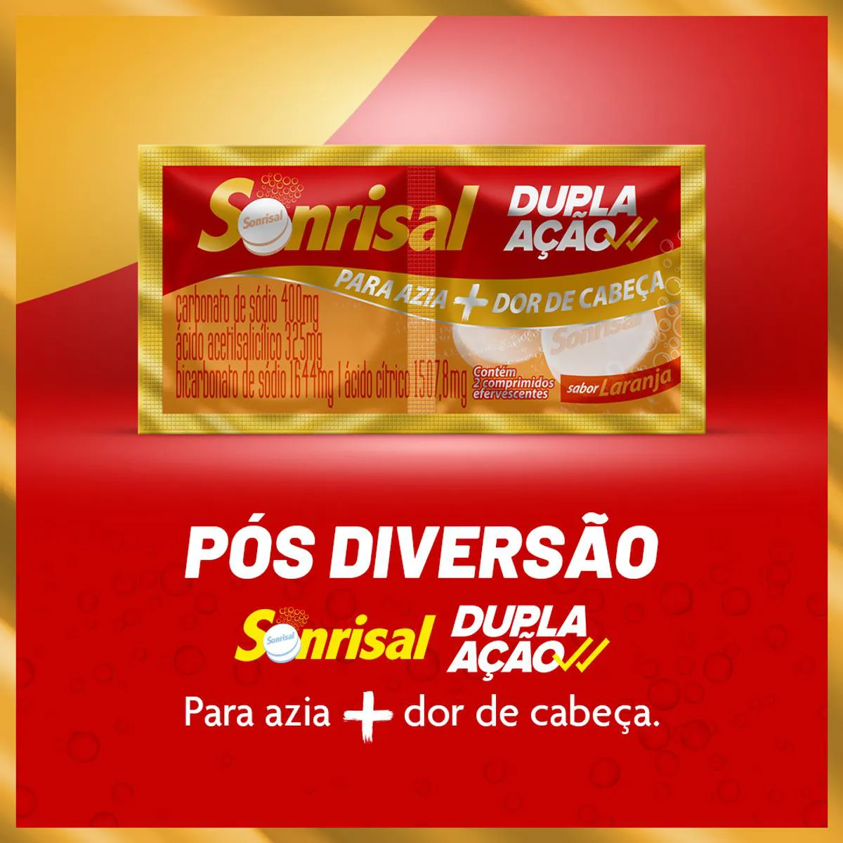 Cada comprimido de Sonrisal traz a combinação de um antiácido e um analgésico, aliviando os sintomas da azia e dor de cabeça.
