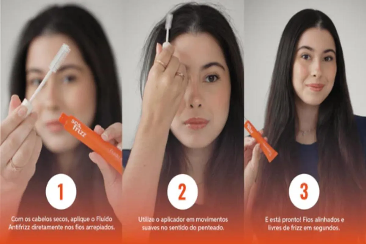 - Aplique o Rímel Antifrizz diretamente nos fios desejados com o aplicador em formato de rímel.
