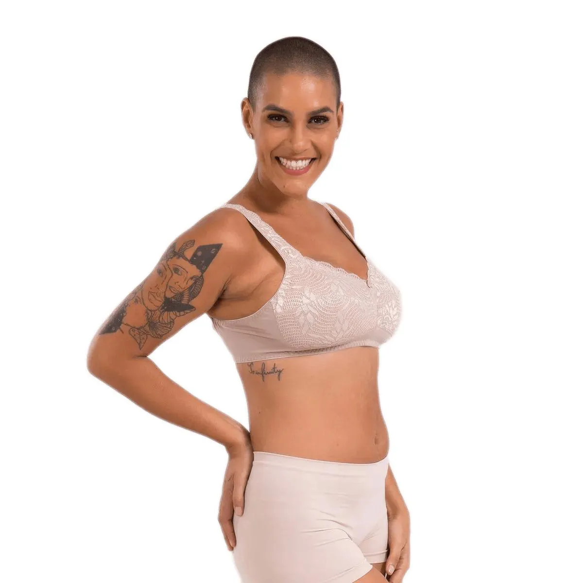 Apresentamos a você o Sutiã Mastectomia em Renda, uma peça delicada e cuidadosamente confeccionada para realçar sua beleza e, ao mesmo tempo, oferecer o conforto e a segurança que você merece. Desenvolvido com atenção aos detalhes, este sutiã é a escolha perfeita para mulheres que passaram por cirurgia de mastectomia. Com uma série de características especiais, este sutiã não apenas proporciona suporte para próteses mamárias, mas também eleva a autoestima, oferecendo maciez, conforto e flexibilidade. Destaque 1: Conforto e Beleza Este lindo sutiã é confeccionado com uma renda de alta qualidade, Lycra® charmosa, que o torna não apenas funcional, mas também elegante. Sabemos o quanto a autoestima é importante, e esta peça foi projetada para fazê-la se sentir linda. Destaque 2: Projetado com Cuidados Especiais Entendemos as necessidades das mulheres que passaram por cirurgia de mastectomia, e é por isso que este sutiã possui um envelope interno em Cotton Lycra® especial, projetado para acomodar a prótese mamária de forma segura e confortável. Cada detalhe foi pensado para o seu bem-estar. Destaque 3: Sustentação e Conforto Nosso Sutiã Mastectomia em Renda oferece firmeza e suporte essenciais para as próteses mamárias, garantindo que você se sinta segura o dia todo. A estrutura da peça é projetada para oferecer conforto incomparável, enquanto o envelope interno assegura que a prótese fique no lugar. Destaque 4: Recuperação da Autoestima Sabemos o quão importante é recuperar a autoestima após uma cirurgia de mastectomia. Nosso sutiã é macio, confortável e projetado para realçar a sua beleza, proporcionando confiança e bem-estar. Destaque 5: Materiais de Qualidade Confeccionado em algodão e elastano, este sutiã oferece suavidade, conforto e elasticidade excepcionais. A composição cuidadosamente escolhida garante que sua pele respire e que você se sinta confortável durante todo o dia. Destaque 6: Versatilidade e Ajuste Perfeito Nosso sutiã é compatível com qualquer tipo de prótese, graças ao fechamento com colchete duplo e tripla regulagem. Isso permite que você ajuste o sutiã conforme sua preferência e se sinta confiante em qualquer situação. Composição: Sutiã: 93% poliamida e 7% elastano Forro: 100% Algodão Renda: 85% Poliamida e 15% Elastano Dê a si mesma o presente da beleza, conforto e confiança com o Sutiã Mastectomia em Renda. Seja a melhor versão de você mesma, todos os dias. Disponível nas cores chocolate e preto.