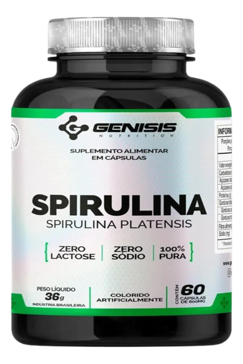 A Spirulina Genisis (spirulina platensis) é conhecida popularmente como uma micro alga, tem grande teor de nutrientes e de benéficos a saúde. Rica em proteínas, aminoácidos essenciais, carboidratos complexos, lipídios, ácidos graxos, minerais, vitaminas e antioxidantes. A spirulina pode servir para melhorar o perfil lipídico, pode reduzir a pressão arterial, tratar a anemia, diabetes e rinite alérgica, além de possuir propriedades antioxidantes, anti-inflamatórias e pode contribuir para a resistência muscular e para a perda de peso.