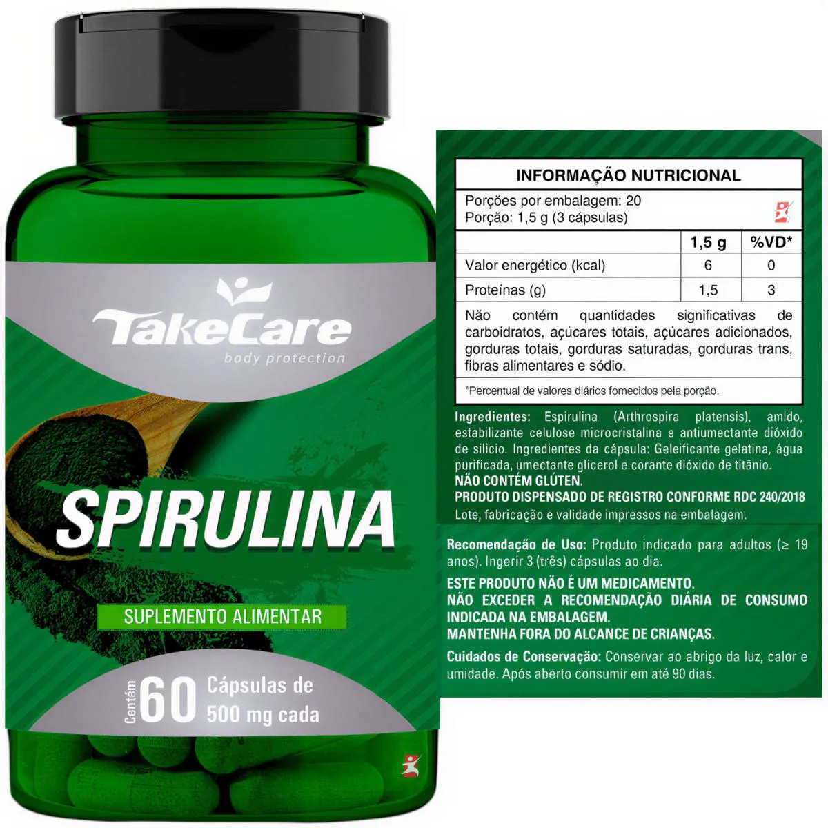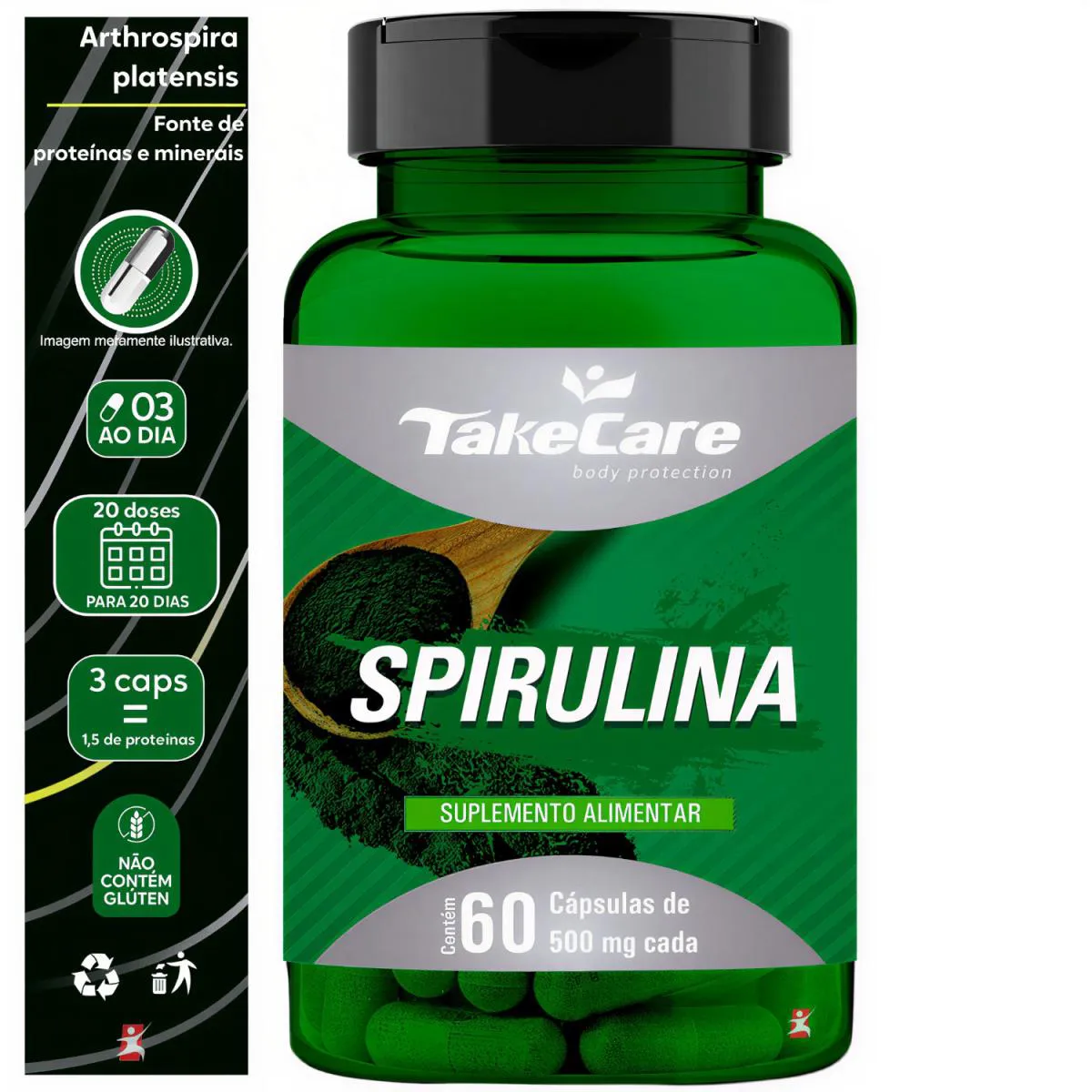 SPIRULINA ARTHROSPIRA PLATENSIS 500MG SUPER ALIMENTO 60 CÁPSULAS - TAKE CARE