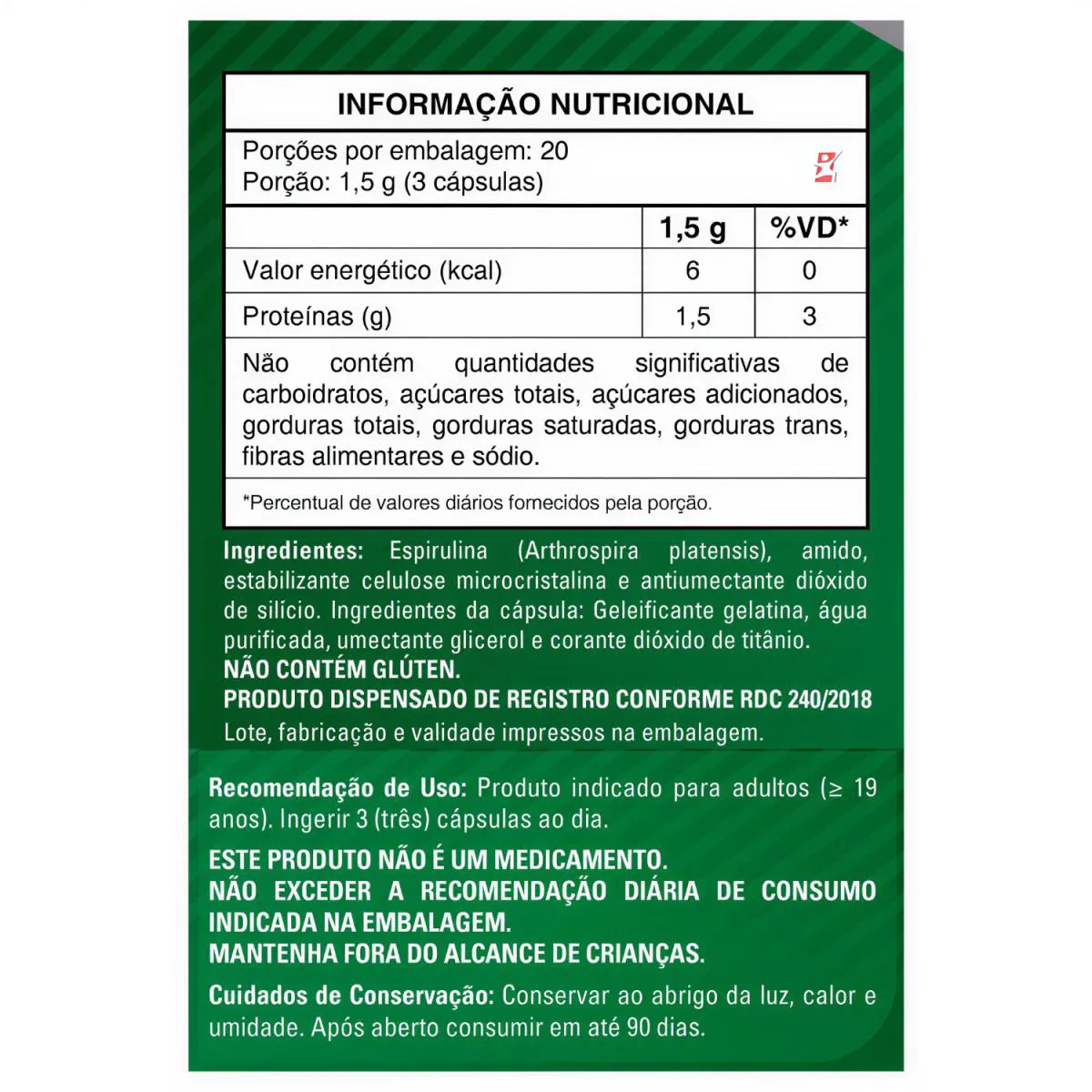 Spirulina Arthrospira Platensis 500Mg Super Alimento 60 Cápsulas - Take Care