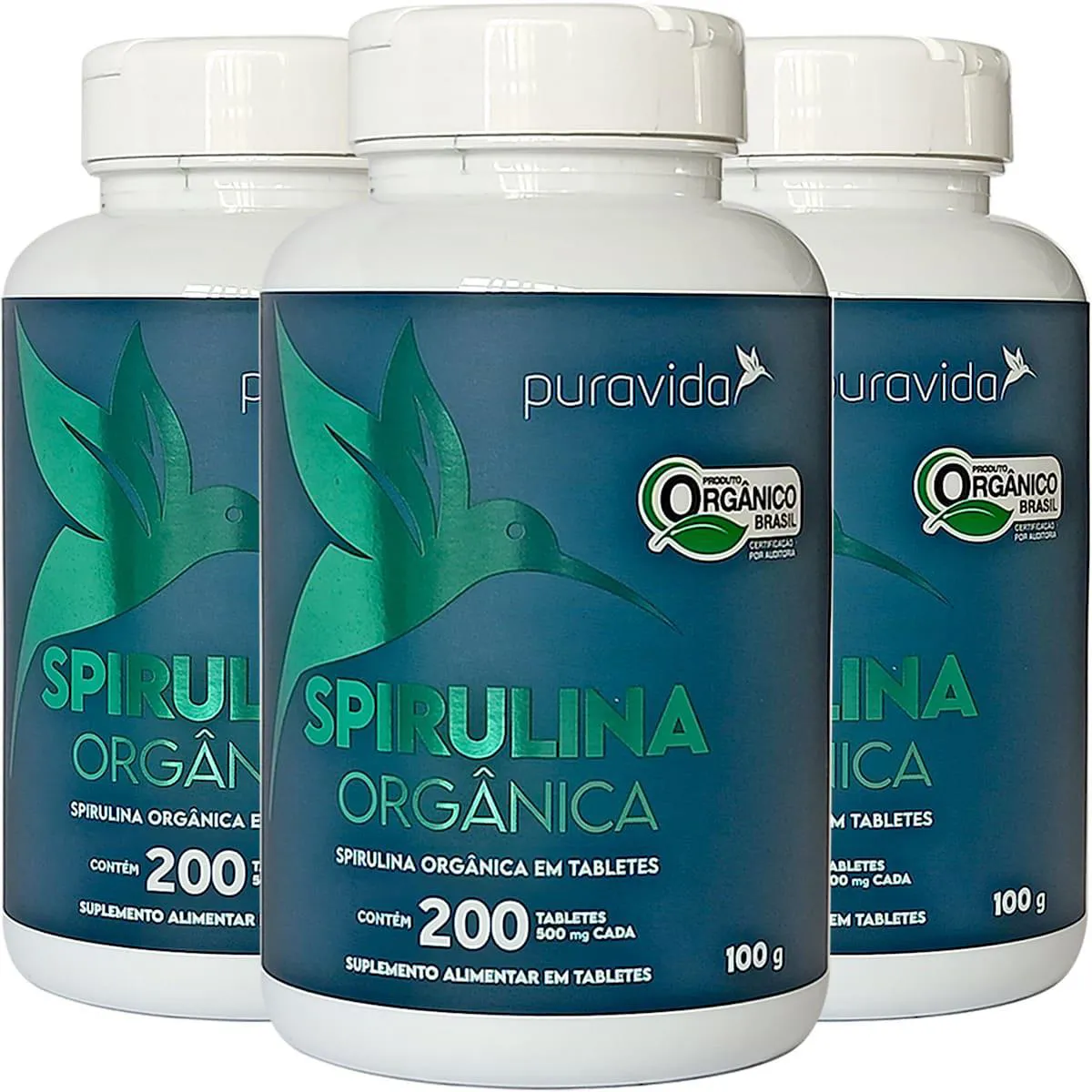 Spirulina Orgânica 3 X 200 comprimidos Puravida