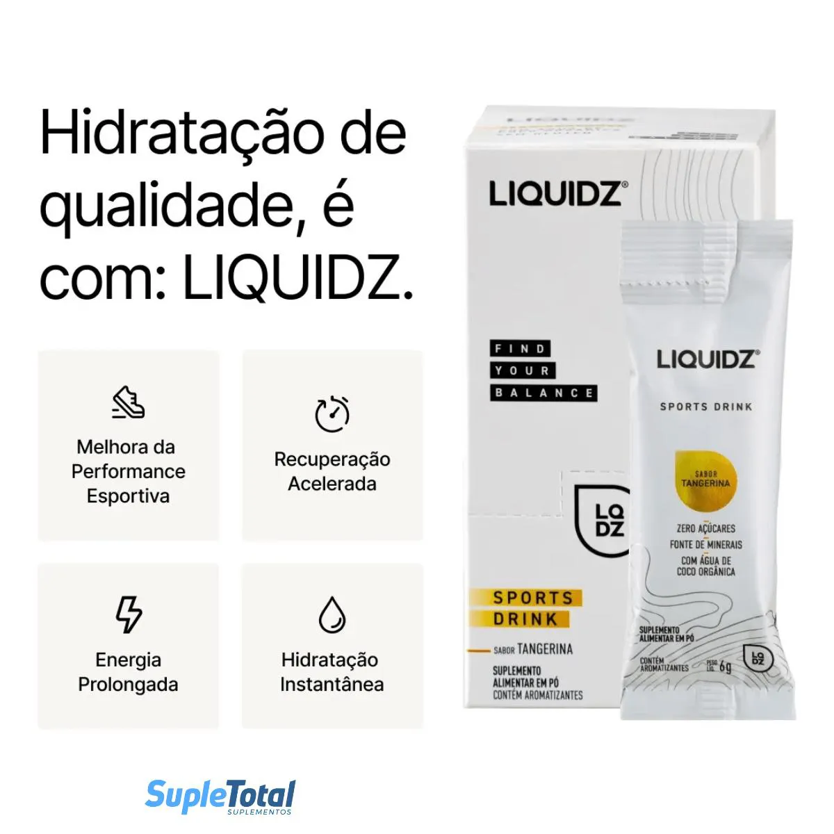 LIQUIDZ é uma solução de hidratação que combina os principais eletrólitos essenciais como sódio, potássio e magnésio. Esses minerais são fundamentais para manter a hidratação adequada, melhorar a função muscular e nervosa, e equilibrar o pH do corpo. LIQUIDZ é formulado para ser consumido diariamente, especialmente ao acordar, durante e após atividades físicas, para garantir uma hidratação eficiente e rápida.