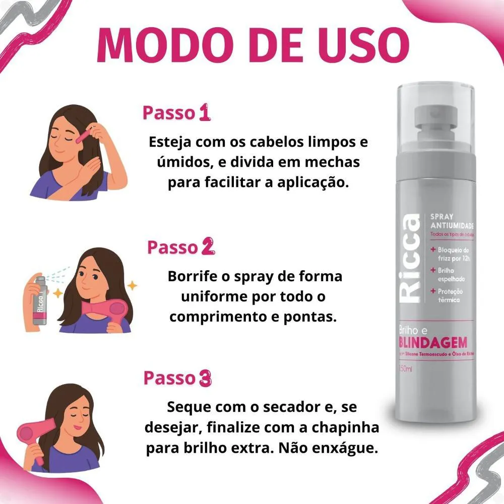 Como usar o Spray Antiumidade Ricca Brilho E Blindagem 150Ml?