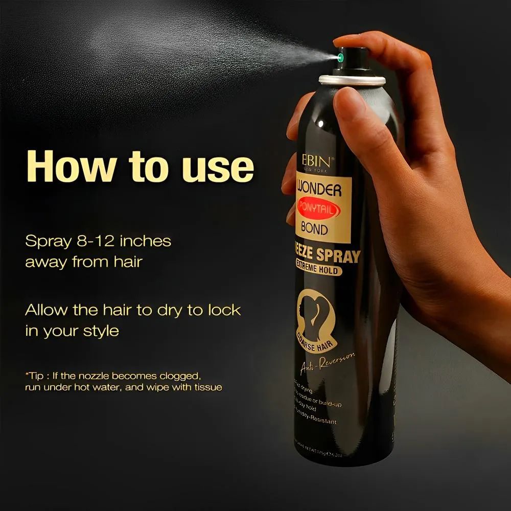 Spray Congelante para cabelo Ebin Bond 245ml – Fixação Duradoura, Umidade e Oleosidade, Ideal para Penteados como Rabo de Cavalo e Coques