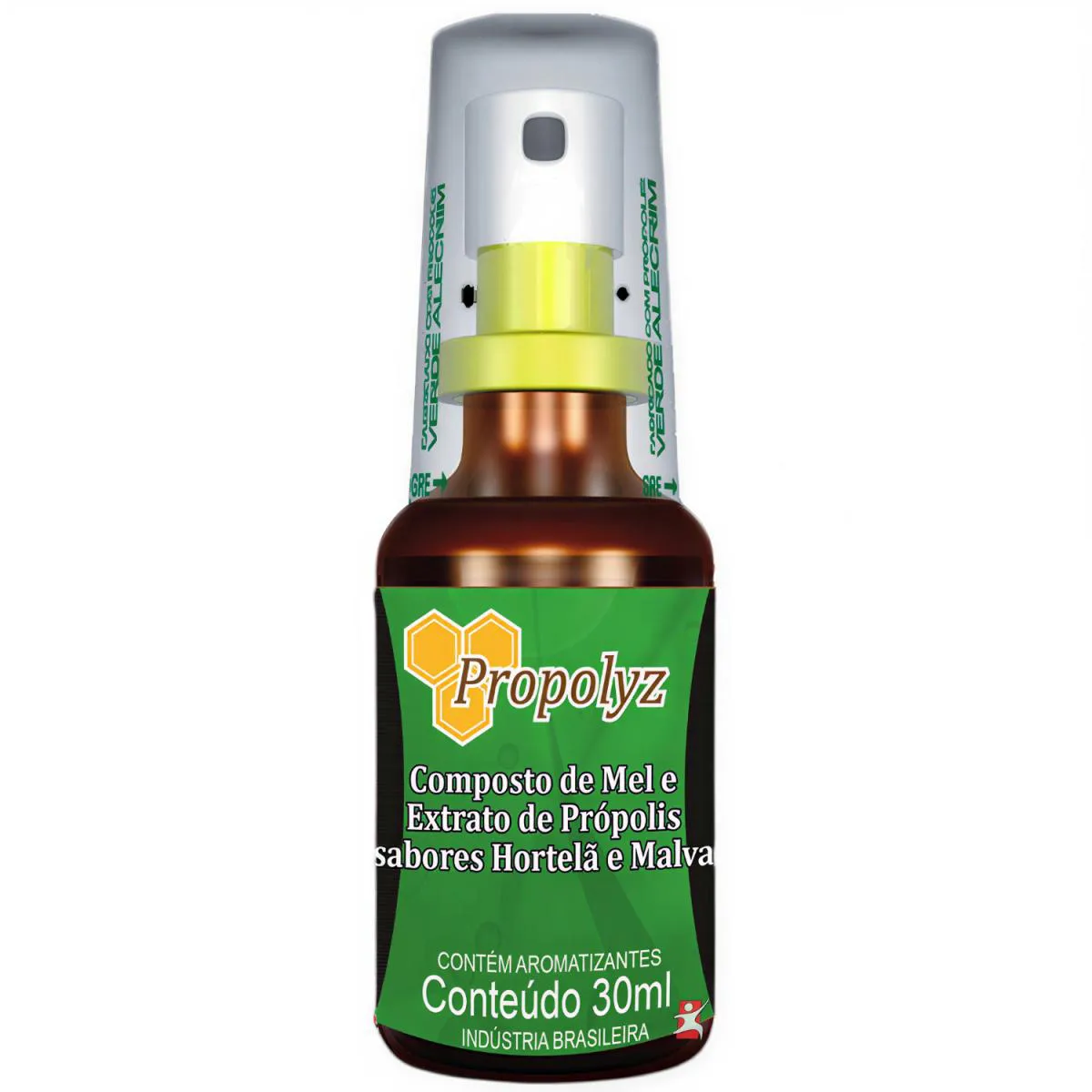 SPRAY VERDE - MEL E PRÓPOLIS COM HORTELÃ E MALVA 30ML - PROPOLYZ Todos os sprays da Propolyz são elaborados com Própolis Verde Alecrim. A própolis Verde Alecrim é produzida na região do Centro Oeste de Minas Gerais, nos apiários da empresa Natucentro e coletada nas colmeias por apicultores especializados. É conhecida internacionalmente como própolis verde. Green própolis, a qual tem como principal fonte vegetal a planta (Baccharis Dracunculifolia), alecrim do campo ou popular vassourinha, possuindo uma coloração verde.É considerada a melhor própolis do mundo, sendo amplamente consumida no Japão. Própolis é uma substância resinosa obtida pelas abelhas através da coleta de resinas da floras (pasto apícola) da região, e alteradas pela ação das enzimas contidas em sua saliva. A cor, sabor e o aroma da própolis variam de acordo com a origem botânica. As abelhas produzem o própolis em defesa da colméia, elas recobrem a entrada a fim de protegê-las contra fungos e bactérias. NÃO CONTÉM GLÚTEN