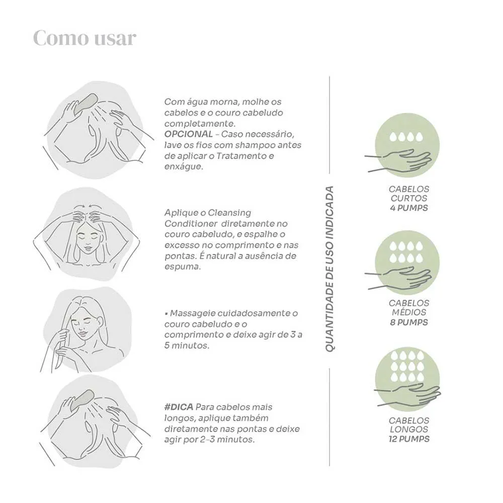 3. Aplique o Cleansing Conditioner diretamente no couro cabeludo, e espalhe o excesso no comprimento e nas pontas. É natural a ausência de espuma.