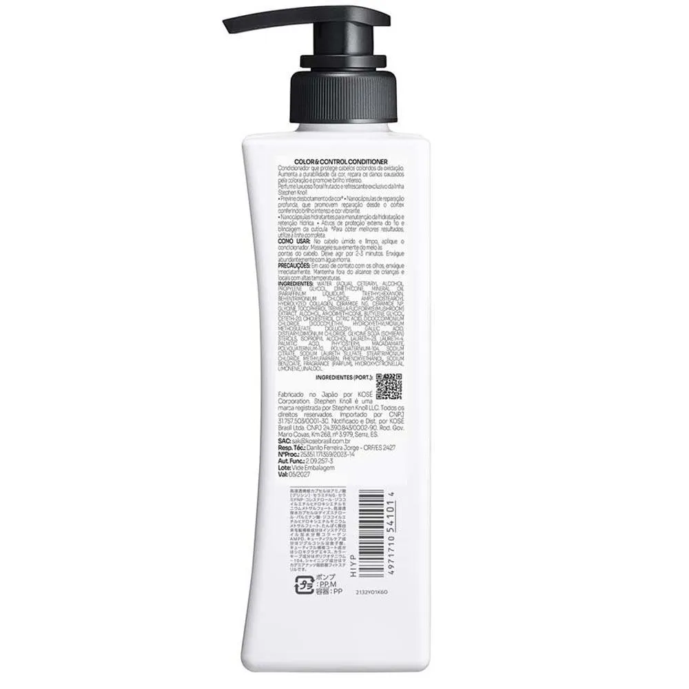 Formulado com tecnologia japonesa nos laboratórios da Kosé, o condicionador Color & Control Stephen Knoll protege cabelos coloridos da oxidação. Aumenta a durabilidade da cor, repara os danos causados pela coloração e promove brilho intenso.