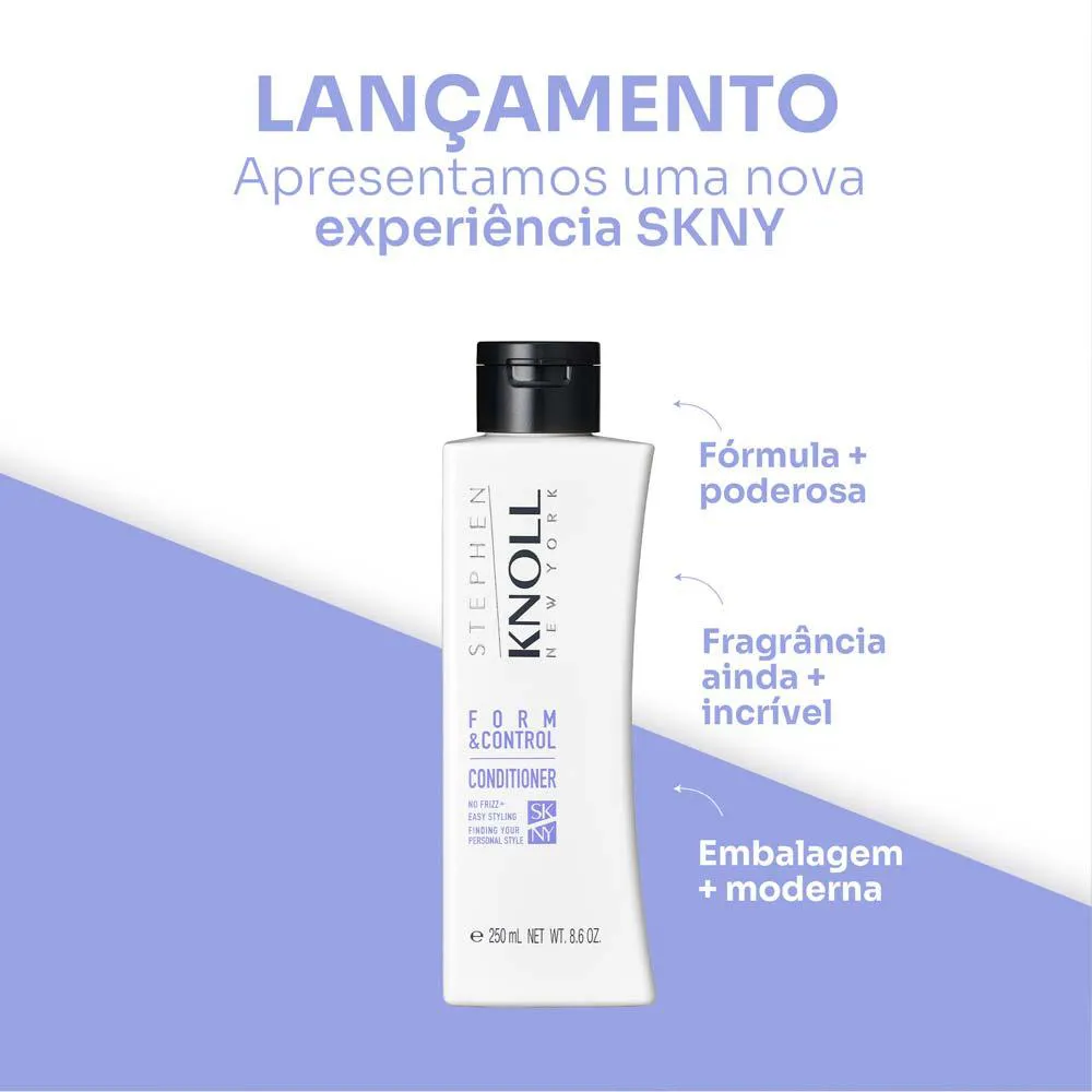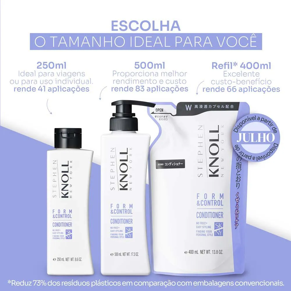 Formulado com tecnologia japonesa nos laboratórios da Kosé, o condicionador Form & Control Stephen Knoll hidrata e disciplina os fios sem pesar.
