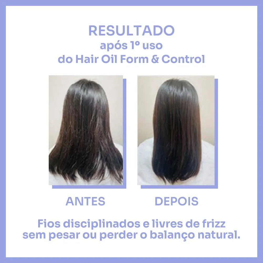 O Form & Control Hair Oil é perfeito por sua fórmula exclusiva que promove desembaraço e penteabilidade, e também oferece defesa contra os raios UV e ferramentas térmicas, além de controlar o frizz e reduzir os danos causados por atrito com o travesseiro ou escovação.
