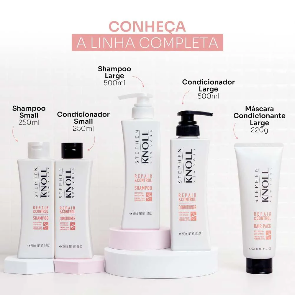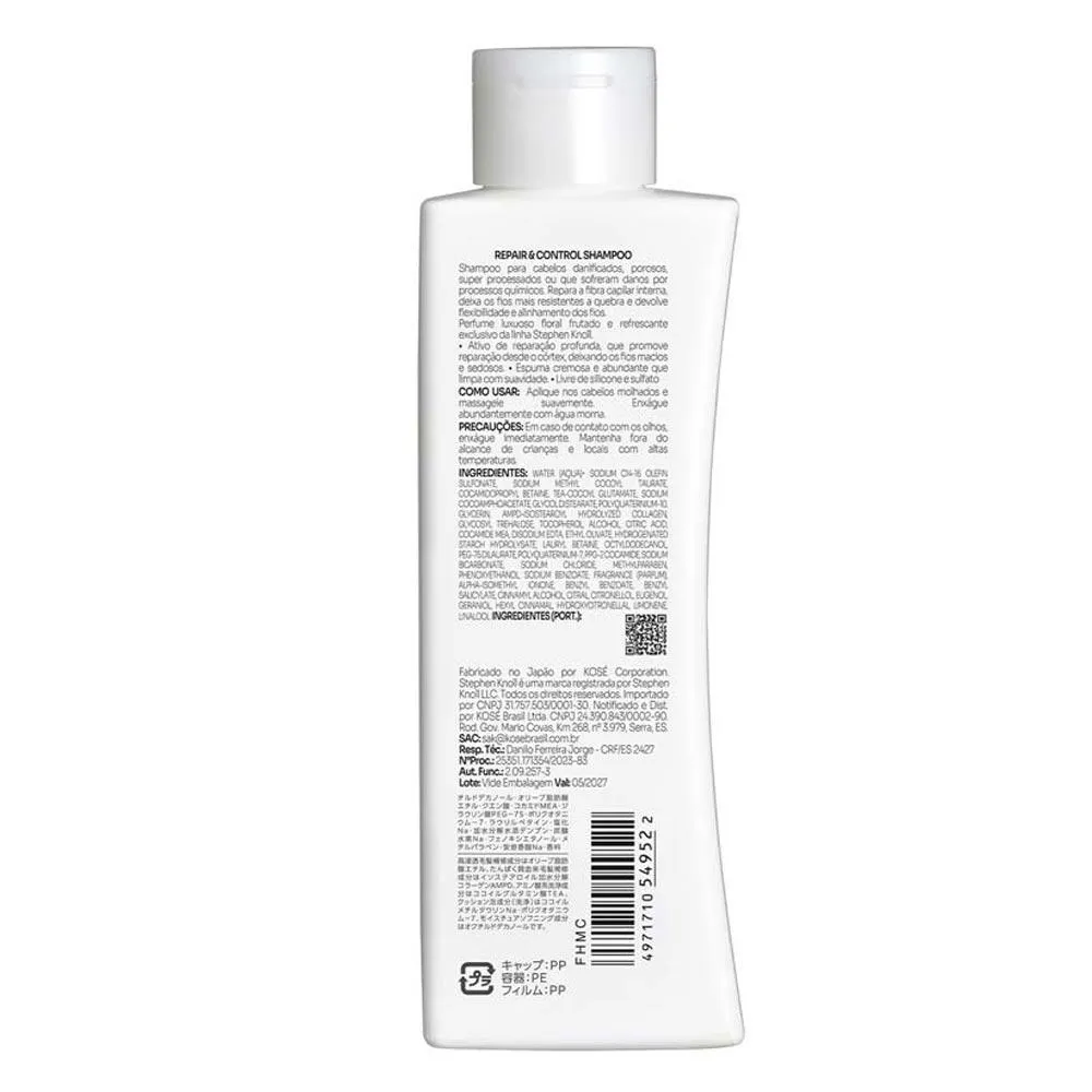 Formulado com tecnologia japonesa nos laboratórios da Kosé, o shampoo Repair & Control Stephen Knoll repara cabelos danificados, porosos, super processados ou que sofreram danos por processos químicos.