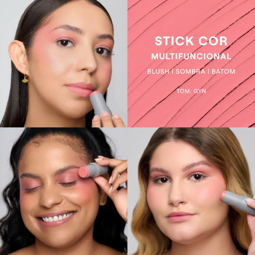 Com sua fórmula 100% vegana, este stick multifuncional pode ser usado como blush, sombra e batom, trazendo praticidade e versatilidade para o seu dia a dia.