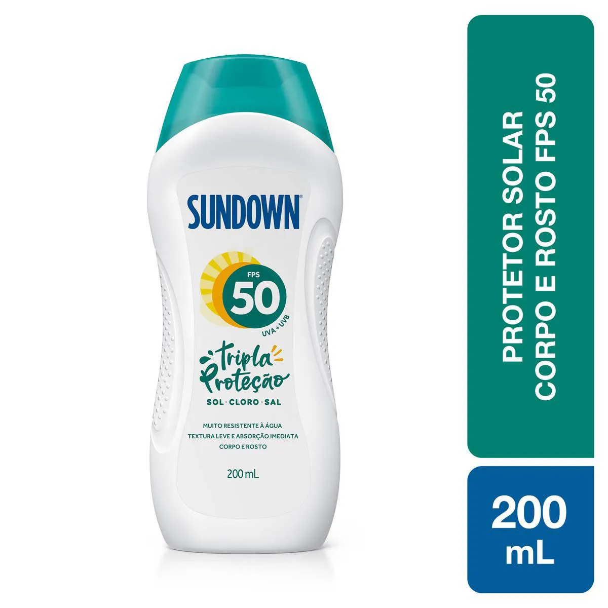 O Sundown Praia e Piscina FPS 50 é um protetor solar que oferece tripla proteção contra raios UVA+UVB, cloro das piscinas e água salgada do mar. Indicado para todos os tipos de pele, pode ser aplicado no rosto e corpo, com fórmula fotoestável e resistente à água e ao suor, garantindo 2 horas de proteção em condições extremas como praia, piscina e práticas esportivas ao ar livre.