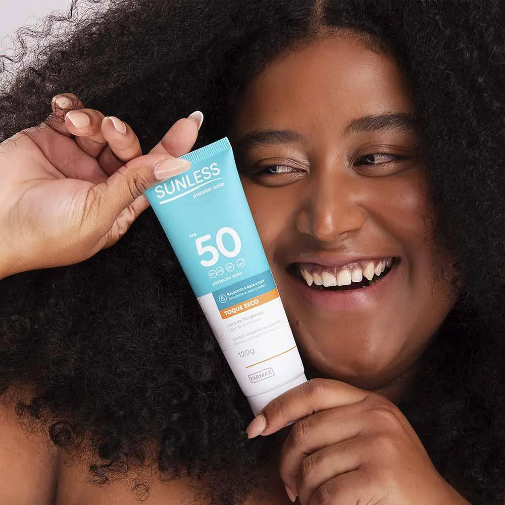 Protetor Solar Corporal FPS 50 Sunless 120g: Indicado para uso adulto, este protetor possui um excelente fator de proteção solar (FPS) de 50, adequado tanto para o dia a dia quanto para atividades ao ar livre mais intensas. Ele combate efetivamente a formação dos radicais livres causados pela exposição aos raios UVA e UVB, contribuindo assim para prevenir o envelhecimento precoce da pele enquanto mantém uma textura macia e suave.