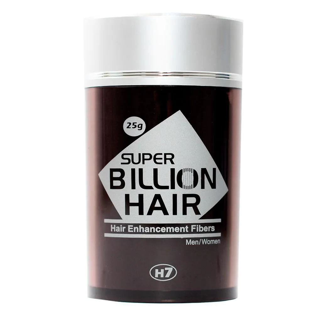 "Super Billion Hair é um complexo orgânico de fibras de queratina em forma de pó seco que simula as características do cabelo humano. Podendo ser usado por homens e mulheres, possui 7 tonalidade de cores diferentes: Preto, Branco, Loiro, Cinza, Castanho claro, Castanho médio e Castanho escuro. É ideal para cobrir falhas no couro cabeludo, dar uma sensação de volume na raiz e apoiar criação de penteados.