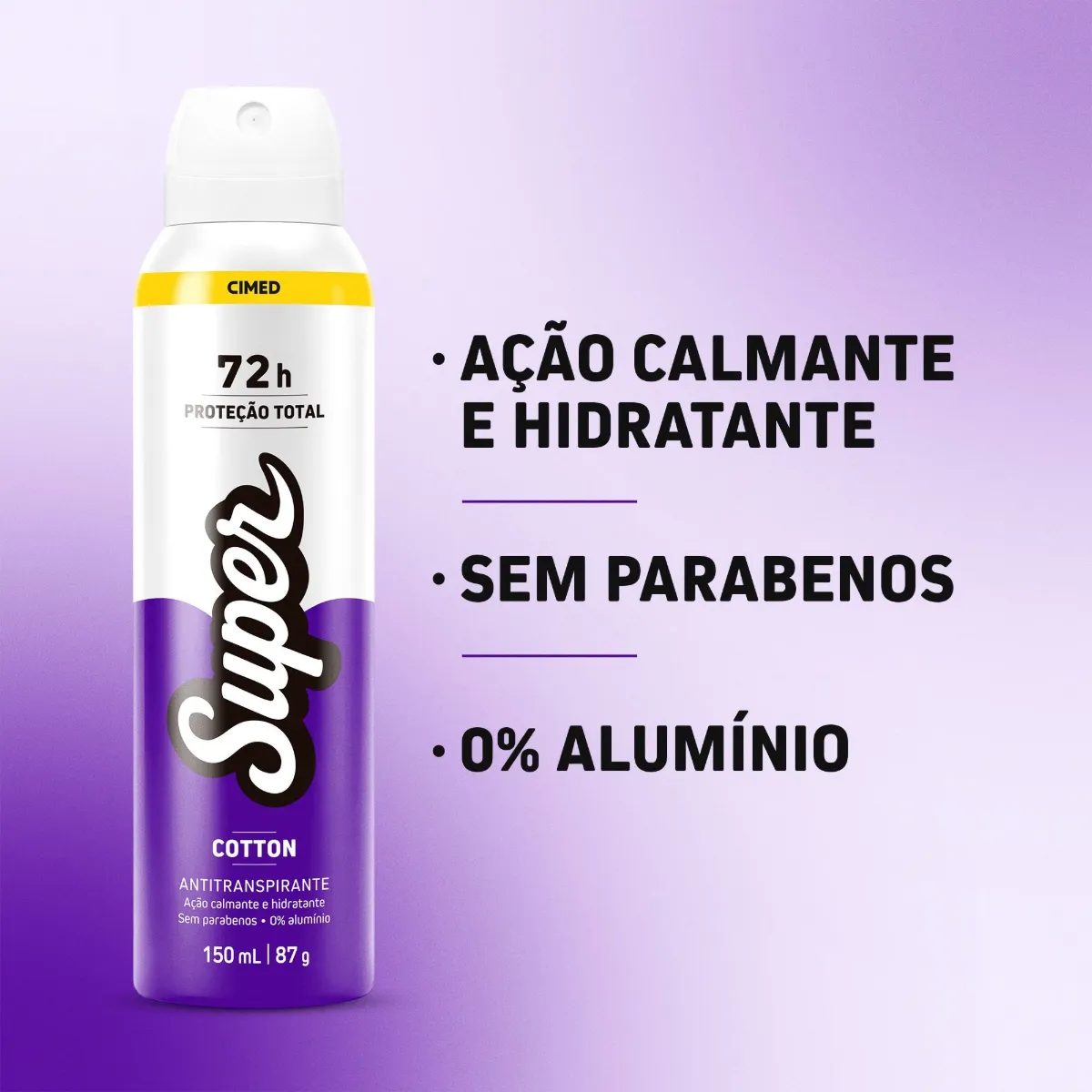 Desodorante Antitranspirante Aerossol Cimed Super Cotton 72h 150ml