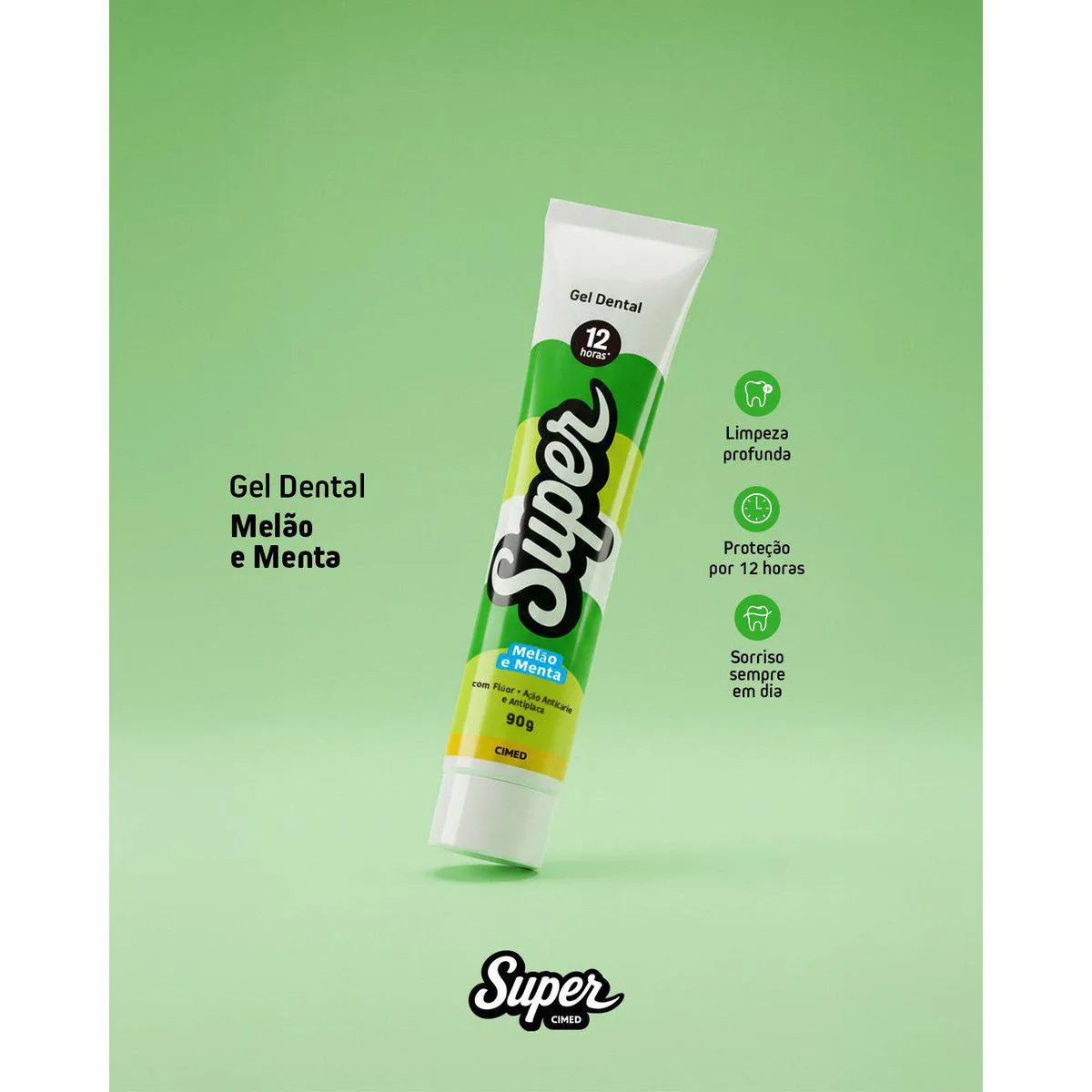 O Gel Dental Super 12 Horas Sabor Melão E Menta entrega benefícios que reforçam o cuidado diário com a saúde bucal: