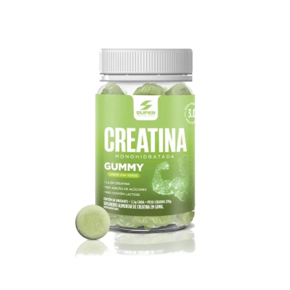 creatina Gummy sabor Uva Verde: prática, saborosa e eficaz, com 3 gomas ao dia você potencializa o seu desempenho físico, aumenta a energia nos treinos e conquista melhores resultados. Experimente!