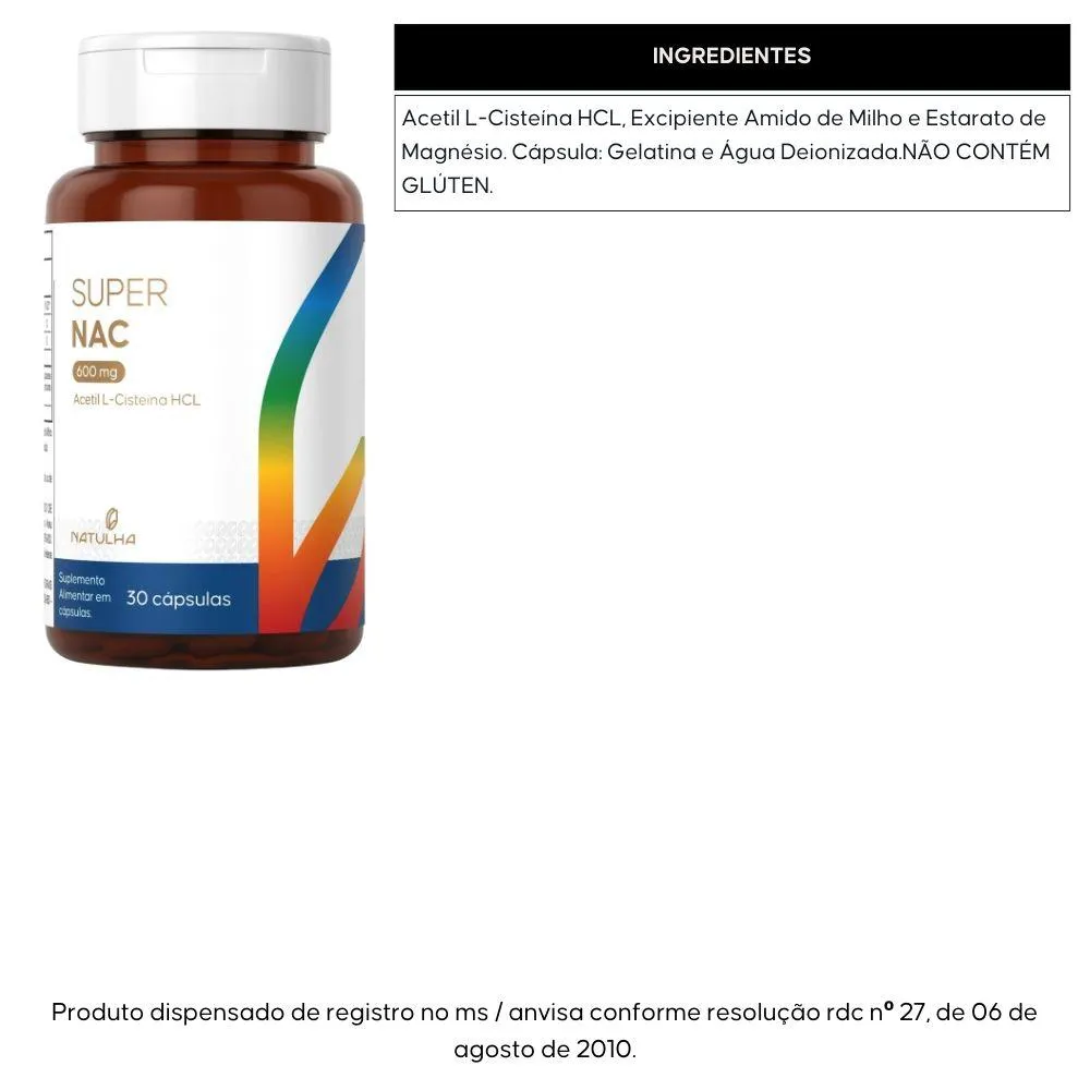 Super Nac (Acetilcisteina Hcl) 600Mg 30 Capsulas - Natulha