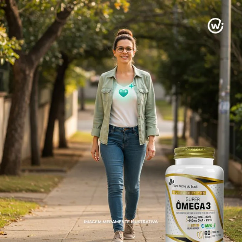 O Super Ômega 3 da Flora Nativa é um suplemento alimentar que oferece 1000mg de óleo de peixe por dose (2 cápsulas), contendo 660mg de EPA (ácido eicosapentaenóico) e 440mg de DHA (ácido docosahexaenóico). Sua formulação usa matéria-prima MEG-3®, reconhecida por elevada pureza e produção sustentável. Este suplemento atua em diversos aspectos do organismo e é amplamente utilizado como aliado em regimes de saúde cardiovascular, cerebral e anti-inflamatória.