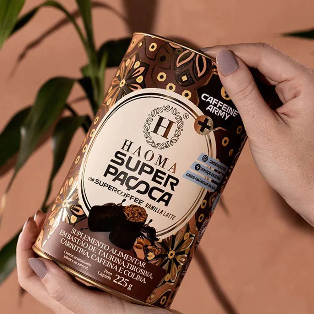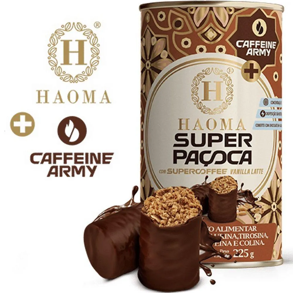 A tradicional paçoca de amendoim Haoma coberta com chocolate 56% cacau, agora veio em uma colab com a Caffeine Army. Mais concentração, foco e disposição com um sabor inigualável de Vanilla Latte
