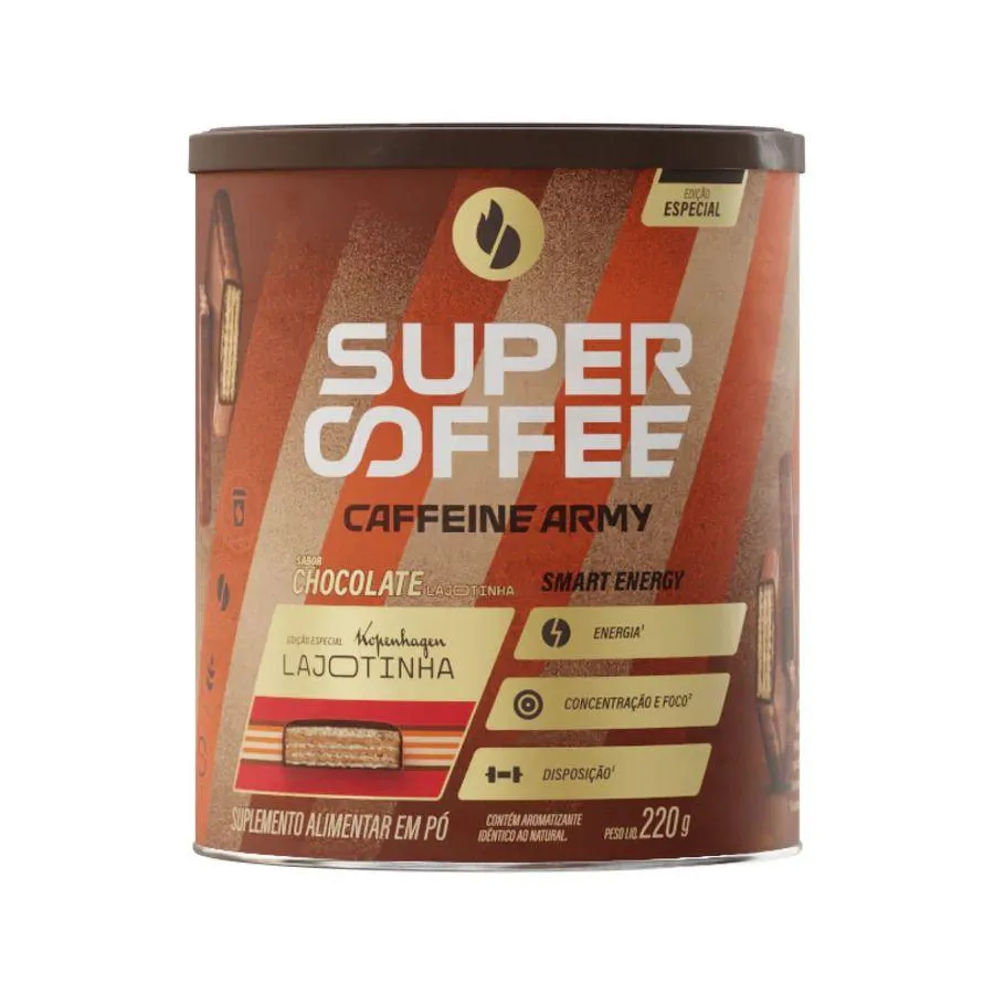 SuperCoffee 3.0 (220g) SuperCoffee 3.O é uma bebida com 20 ingredientes estrategicamente combinados ao café e foi cuidadosamente pensado para proporcionar uma energia potente, natural e que não oscila, com benefícios que otimizam ainda mais a sua rotina.O SuperCoffee Língua de Gato é uma edição especial, resultado da parceria entre a Caffeine Army e a Kopenhagen, que traz o sabor clássico do chocolate Língua de Gato com os benefícios funcionais do SuperCoffee. Além de delicioso, ele é rico em nutrientes que promovem energia limpa e duradoura, ideal para quem busca manter o foco e a disposição ao longo do dia. PRA QUEM Este produto foi desenvolvido para quem busca melhorar a performance física e mental. Quem busca disposição, mais resistência física e a capacidade de concentração contínua. COMPLEXOS ATIVOS Café Arábica + Taurina + Coenzima Q10 + TCM e C10 = energia limpa e sem oscilação;Complexo B + Colina + Cromo + Cafeína Microencapsulada = foco e performance cognitiva;colágeno Verisol + L-Tirosina + Café Verde + L-Carnitina = matabolismo e saúde da pele. CAFFEINE ARMY Somos um movimento com a missão de oferecer energia e incentivar as pessoas a viverem as suas melhores versões. Desenvolvemos suplementos inteligentes, com ingredientes de alto valor nutricional e à base de café, para performance física e mental. Temos três pilares que sustentam nossa constante evolução: ciência, tecnologia e qualidade. Caffeine Army é Smart Energy, energia que não oscila e não te deixa na mão. BENEFÍCIOS: - Performance e energia;- Concentração e foco;- Disposição sem excitação;- Saúde da pele, unhas e cabelos;- 2,5g de Colágeno Verisol na porção diária;- 100mg de Coenzima-Q10, por dosador;- 525mg Tirosina, por dosador;- 500mg Café Verde, por dosador.