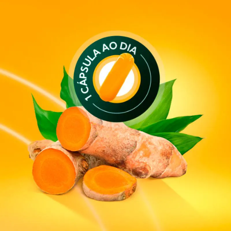 - Combina cúrcuma, ácido hialurônico e colágeno.