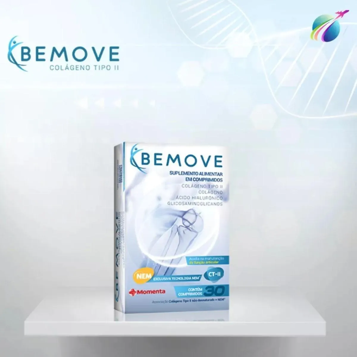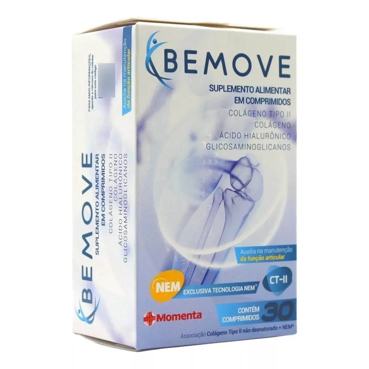 Suplemento Alimentar Bemove - 30cpr Bemove é uma associação de colágeno tipo II não desnaturado com o extrato liofilizado da membrana interna da casca do ovo da galinha. A membrana interna da casca do ovo disponibiliza elementos importantes encontrados em vários tecidos do nosso organismo como pele, tendões, cartilagem e ossos. A membrana da casca do ovo de galinha é fonte das substâncias bioativas ácido hialurônico, glicosaminoglicanos e colágeno. Colágeno tipo II não desnaturado é obtido por um processo patenteado pela Bioibérica, empresa espanhola líder de mercado no desenvolvimento de ativos para cuidados articulares.