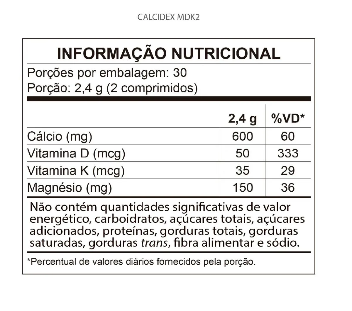 Suplemento Alimentar Cálcidex MDK2 Com 60 Comprimidos – Qualynutri