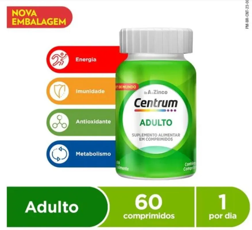 Centrum de A a Zinco é um suplemento vitamínico e mineral para adultos. Possui uma fórmula equilibrada com vitaminas e minerais necessários à saúde dentro dos limites diários recomendados. Zero calorias Livre de glúten e lactose. Suplemento vitamínico de A a Zinco, possui ação antioxidante, além de contribuir para melhorar a energia e a imunidade.