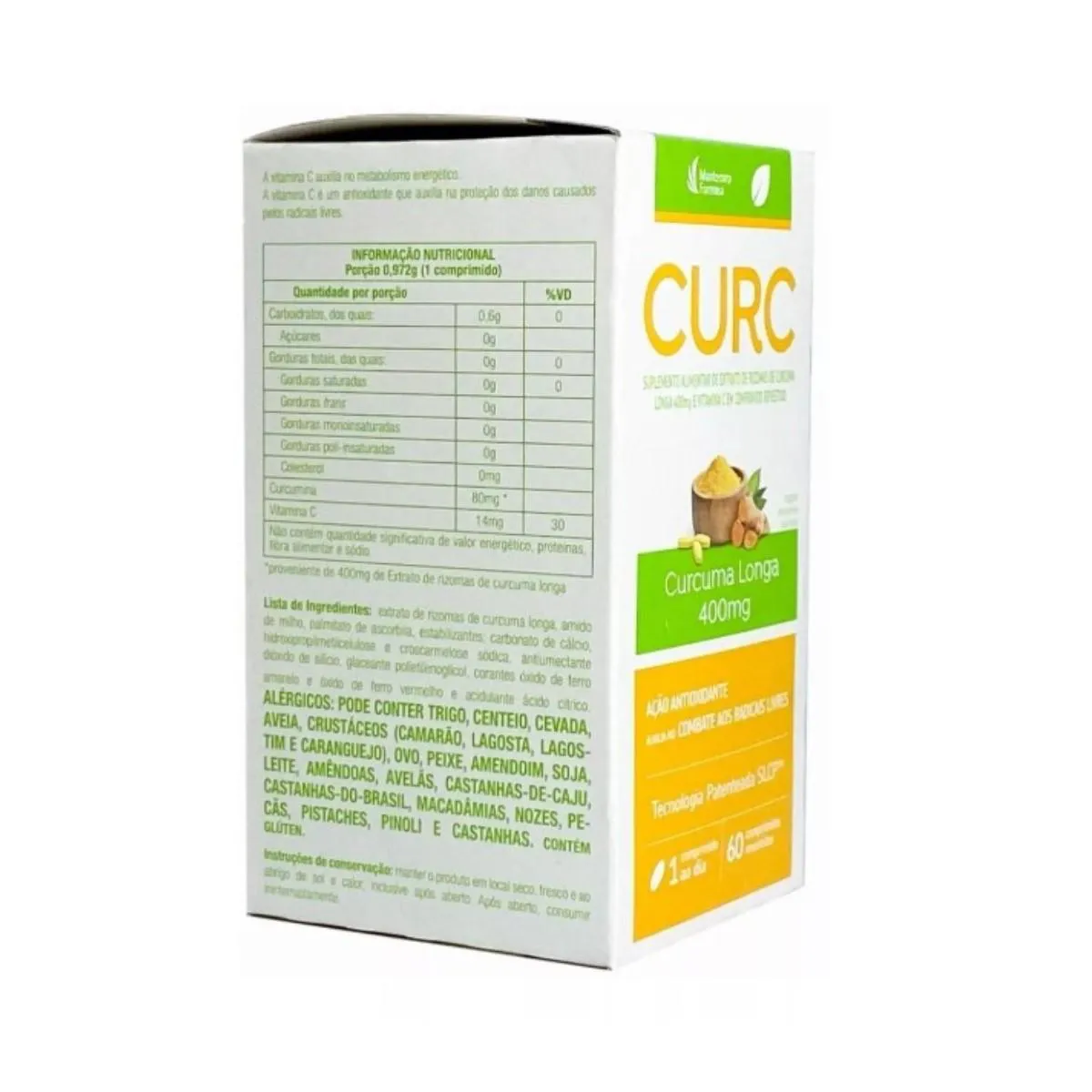 O Curc é um suplemento alimentar em comprimidos, composto por Extrato de Rizomas de Cúrcuma Longa e vitamina C, desenvolvido para auxiliar no combate aos radicais livres, reduzir dor e inflamação crônica, lombalgias e tendinopatias, além de oferecer ação antioxidante como alternativa para pessoas com restrição ao uso de anti-inflamatórios não esteroidais (AINES).