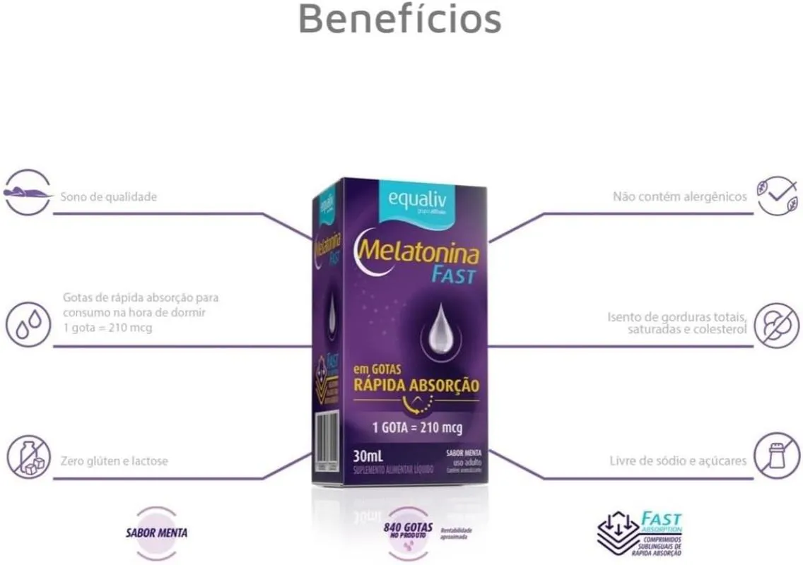 - Equaliv Melatonina Fast é um suplemento alimentar em gotas desenvolvido para auxiliar na regulação do sono.