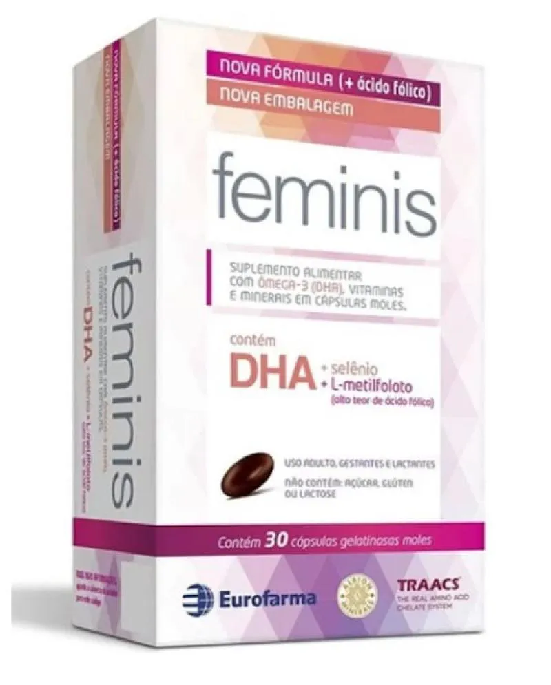 O Suplemento Alimentar Feminis Eurofarma é um polivitamínico composto por uma combinação de vitaminas, minerais quelatados e ômega 3. Serve para contribuir com nutrientes essenciais para o bom funcionamento do organismo e manutenção da saúde feminina, especialmente para gestantes e lactantes.