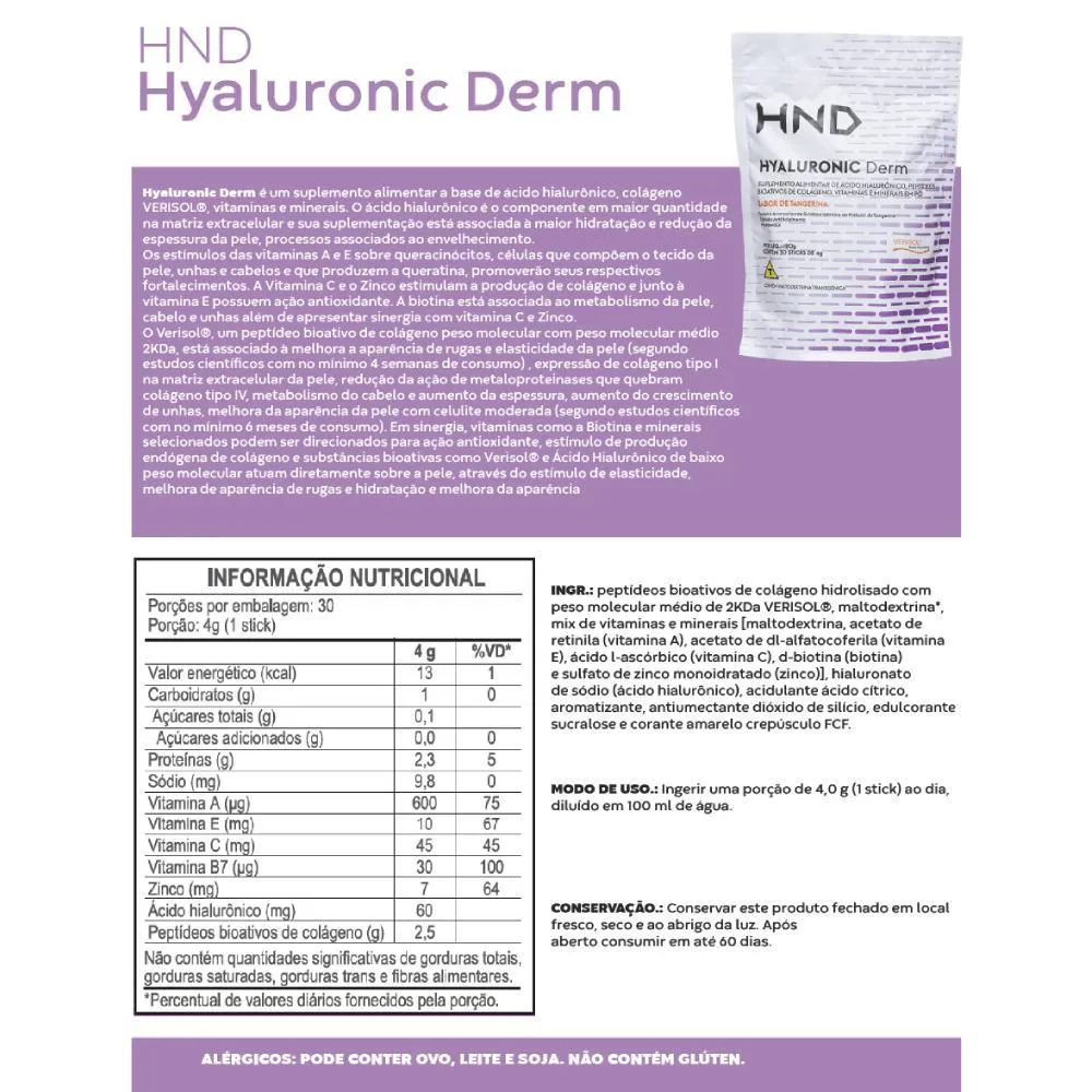 Apresentado em um prático formato em pó e em sabor delicioso, o Hyaluronic Derm HND é a solução ideal para integrar facilmente na sua rotina diária, garantindo que você não apenas sinta, mas também veja a diferença na sua pele. Aproveite os benefícios deste suplemento exclusivo e dê à sua pele o tratamento que ela merece!