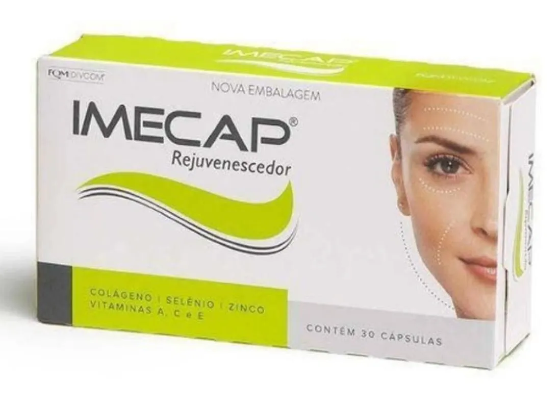 Imecap® Rejuvenescedor é um nutracêutico indicado para os cuidados da pele, que age nas camadas mais profundas da derme, revitalizando a sua estrutura. Produzido a partir de colágeno hidrolisado e enriquecido com bionutrientes antioxidantes, Imecap® Rejuvenescedor contém proteínas que aumentam a umidade da pele, prevenindo a formação de rugas, estimulando o metabolismo da pele na formação de novo colágeno. Sua composição de colágeno hidrolisado, ácido ascórbico, zinco e selênio atuam na restauração da pele, na diminuição dos efeitos dos radicais livres e na estimulação e produção de um novo colágeno.