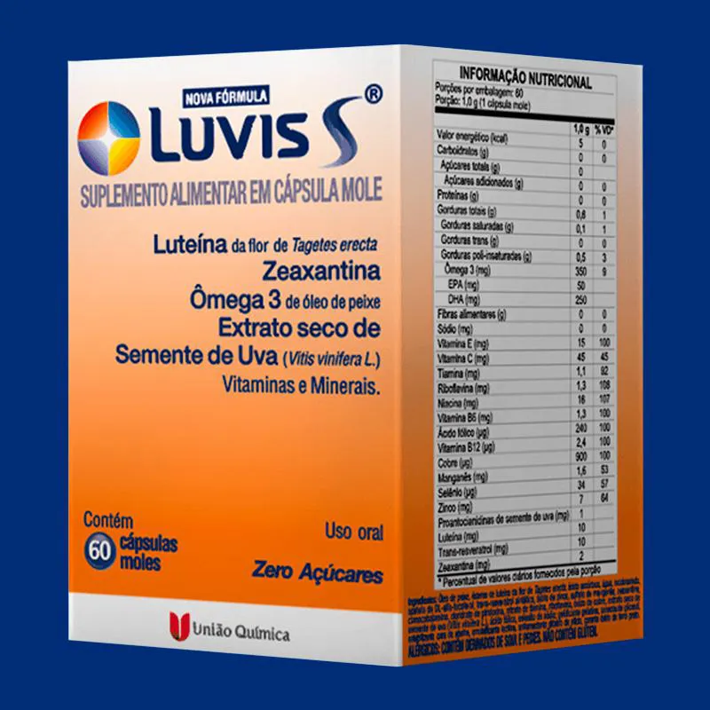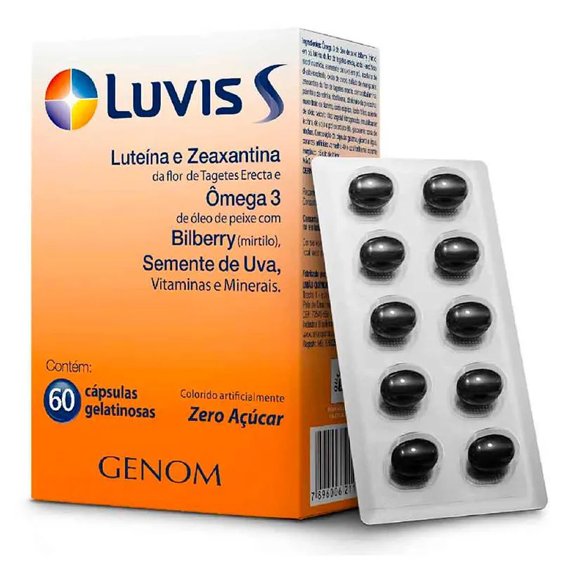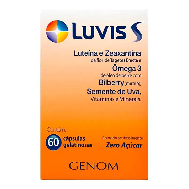 O Luvis S Genom é um suplemento alimentar desenvolvido para auxiliar na manutenção da saúde ocular, especialmente em adultos preocupados com a degeneração macular relacionada à idade (DMRI). Sua fórmula combina nutrientes essenciais com ação antioxidante, que protegem as células contra os danos causados pelos radicais livres. Composição por cápsula:- Luteína (10 mg): Carotenoide com ação antioxidante, auxilia na proteção da mácula ocular.