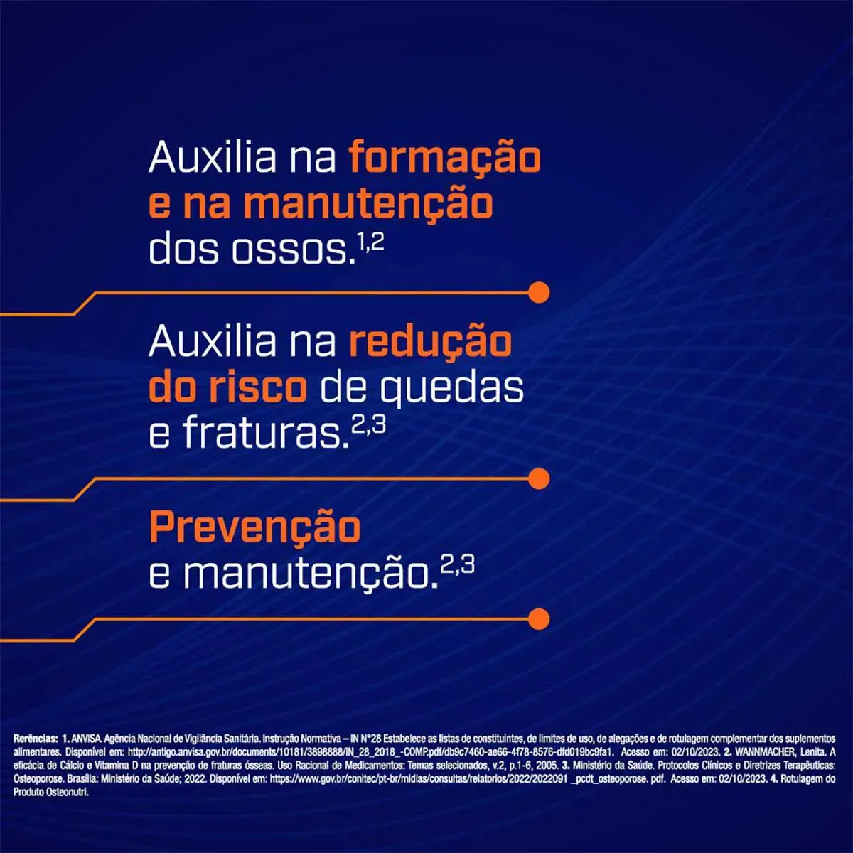 O Suplemento Alimentar Osteonutri C/60 é um produto composto por cálcio e vitamina d, desenvolvido para complementar a alimentação e fornecer nutrientes essenciais. Serve para auxiliar na formação e manutenção de ossos e dentes, e no funcionamento muscular, ajudando a suprir as necessidades nutricionais do corpo quando a alimentação diária não é suficiente.