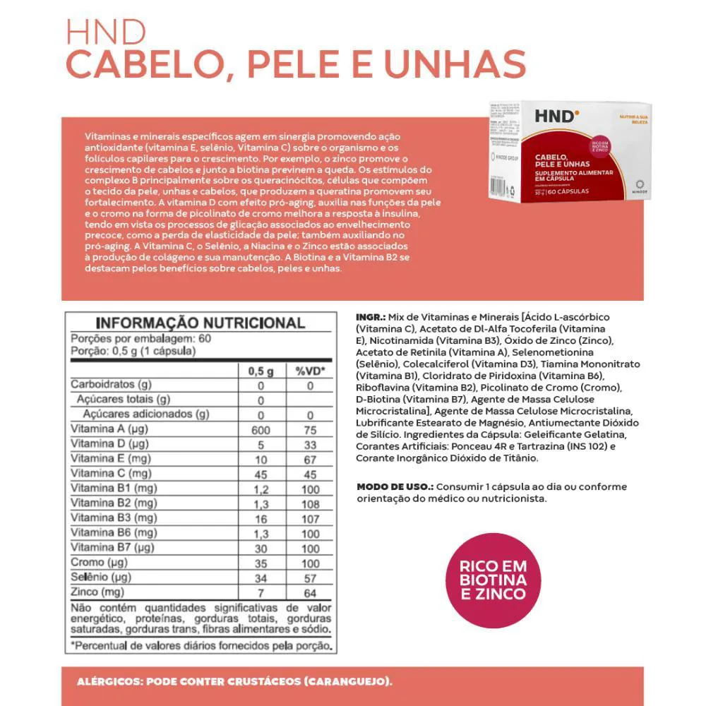 Suplemento Alimentar para Cabelo, Pele e Unhas Hnd 60 Cápsulas
