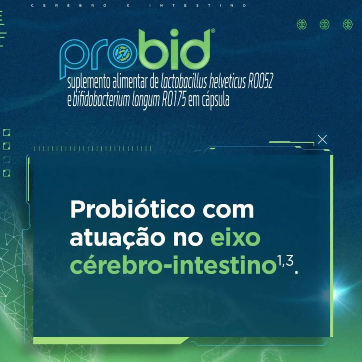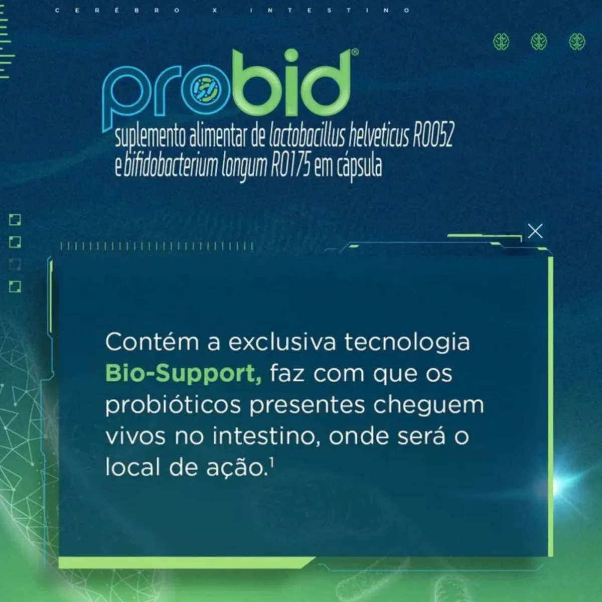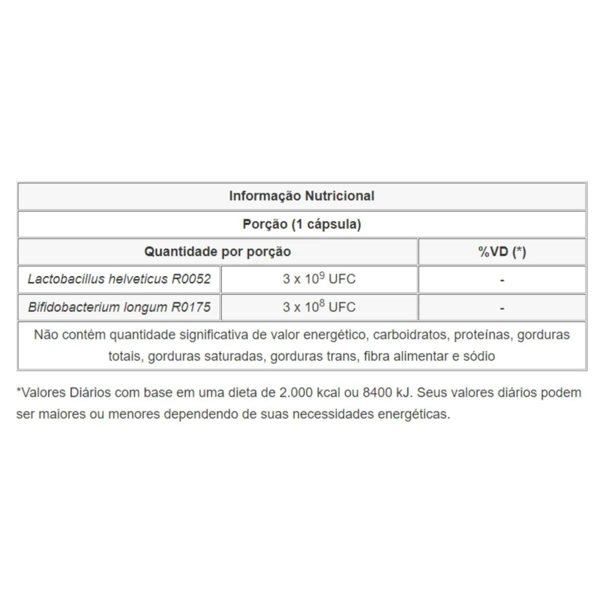 - Formulado com cepas específicas de probióticos Lactobacillus helveticus R0052 e Bifidobacterium longum R0175.