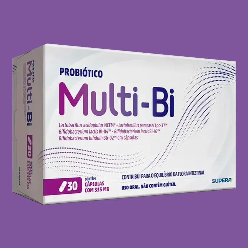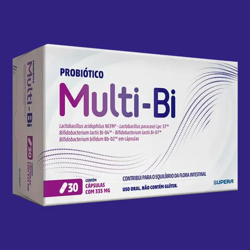 O Multi Bi é um suplemento alimentar simbiótico em cápsulas, composto por probióticos (Lactobacillus) e prebióticos, desenvolvido para auxiliar no equilíbrio da microbiota intestinal. Sua fórmula combina lactobacilos e fibras prebióticas para promover a saúde digestiva.